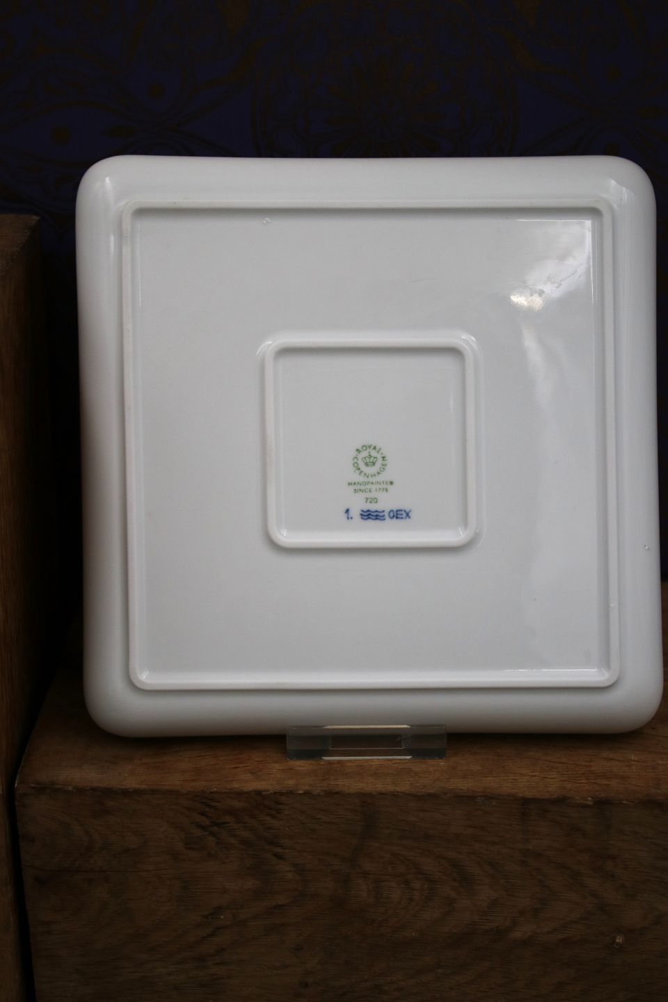 Royal Copenhagen Musselmalet Riflet firkantet tallerken.20x20cm. Dekorationsnummer 720. 2.sort.