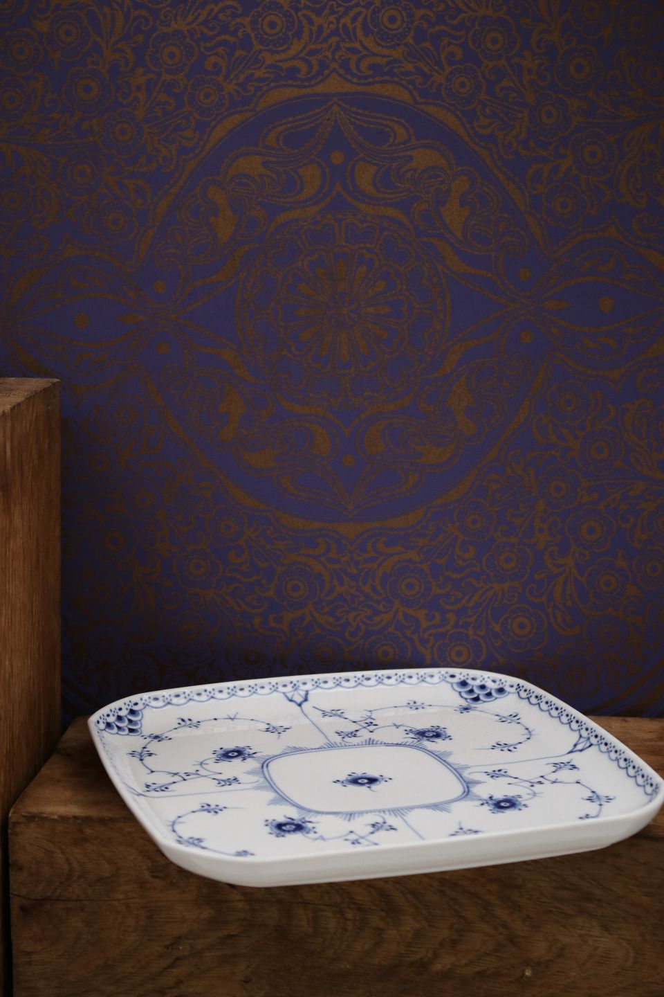 Royal Copenhagen Musselmalet Halvblonde firkantet tallerken.20,5x20,5cm. Dekorationsnummer 720. 2.sort.