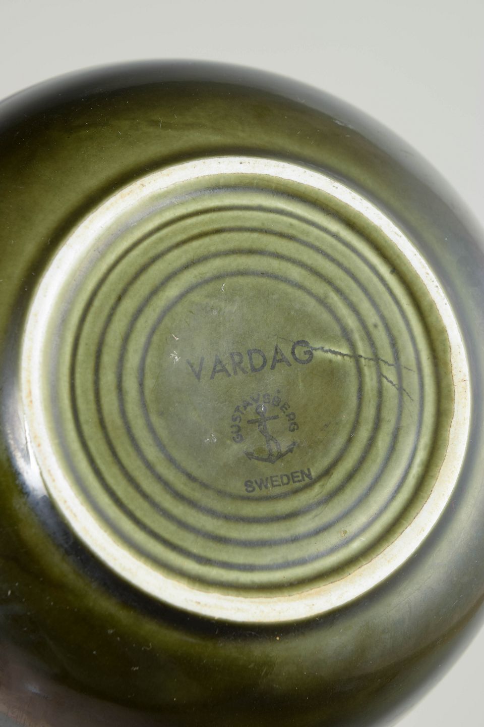 Stig Lindberg for Gustavsberg, Vardag-serien, sæt af fire skåle.Sæt bestående af fire skåle i stentøj fra Vardag-serien med karakteristisk grøn glasur. Enkle og funktionelle former designet til hverdagsbrug, med et roligt og tidløst skandinavisk modernistisk udtryk.