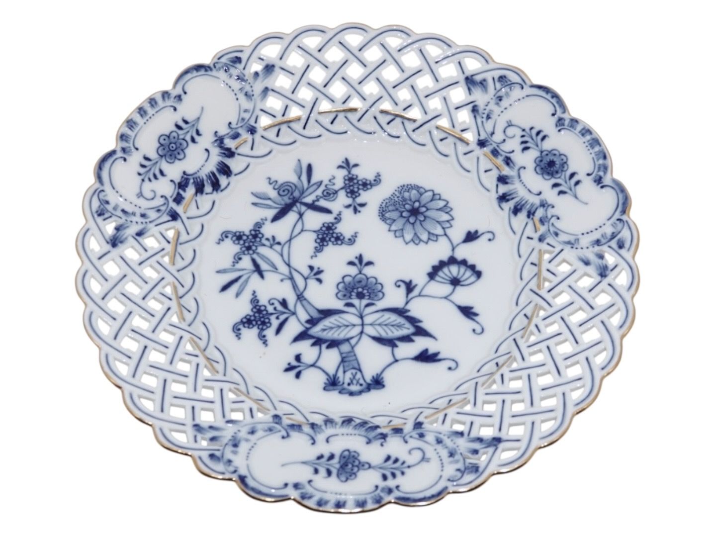 Meissen Tyskland, Blue Onion tallerken med dobbeltblonde og guldkant.Diameter 23,5 cm.