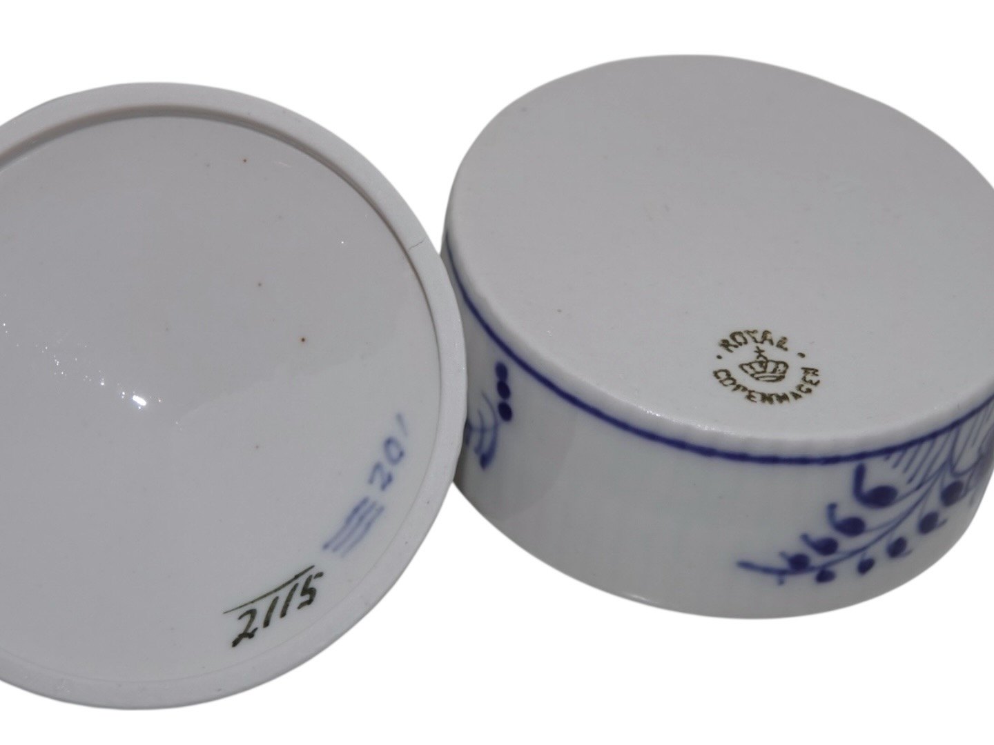 Royal Copenhagen Musselmalet Riflet, lille skål med låg.