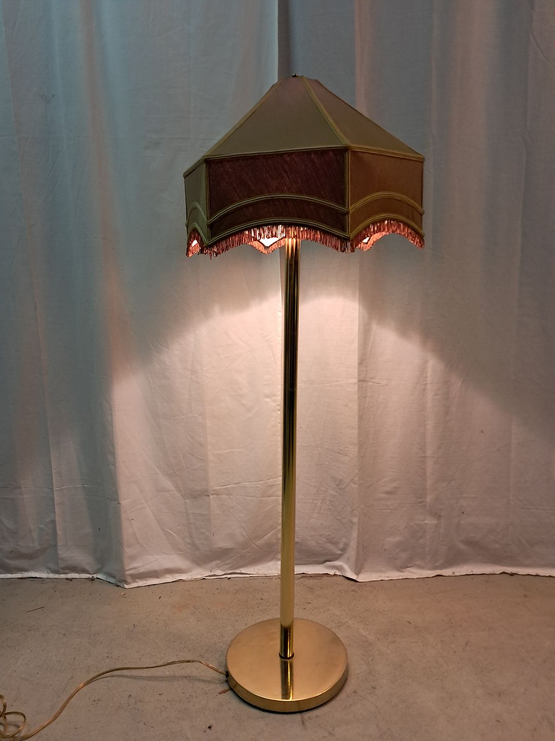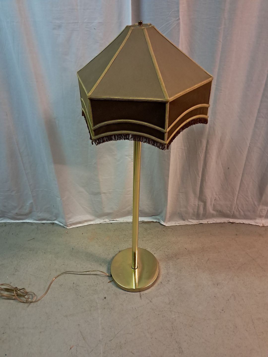 Gulvlampe i metal med lampeskærm, fra 1990erne.Den har brugsspor.