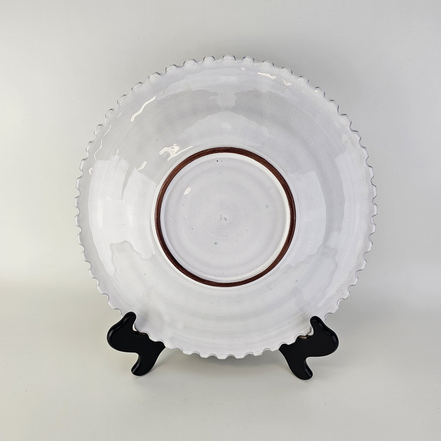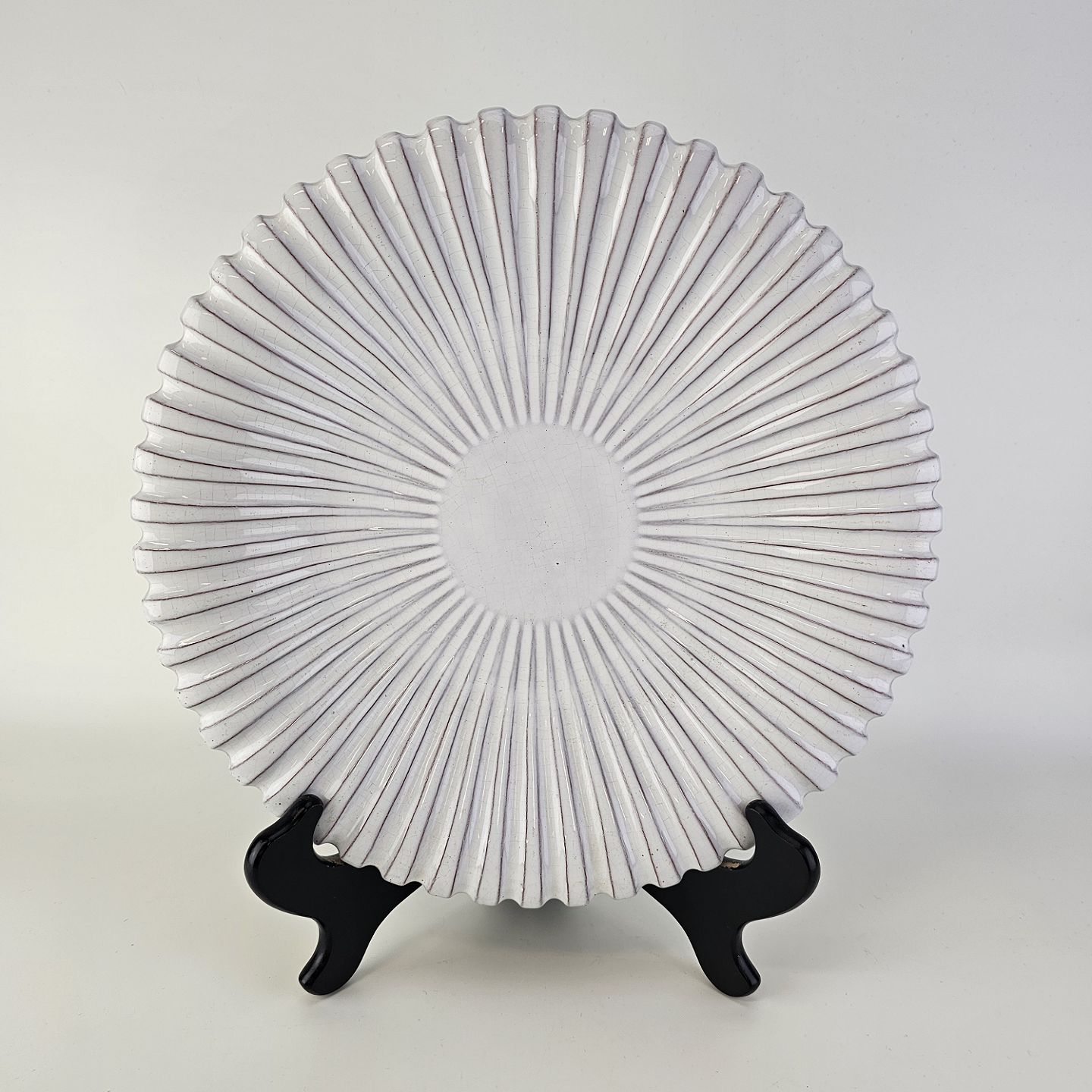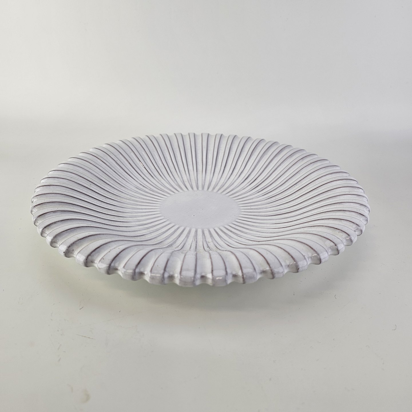 Rundt fad med riflet tekstur i keramik med hvid glasurProducent Eslau