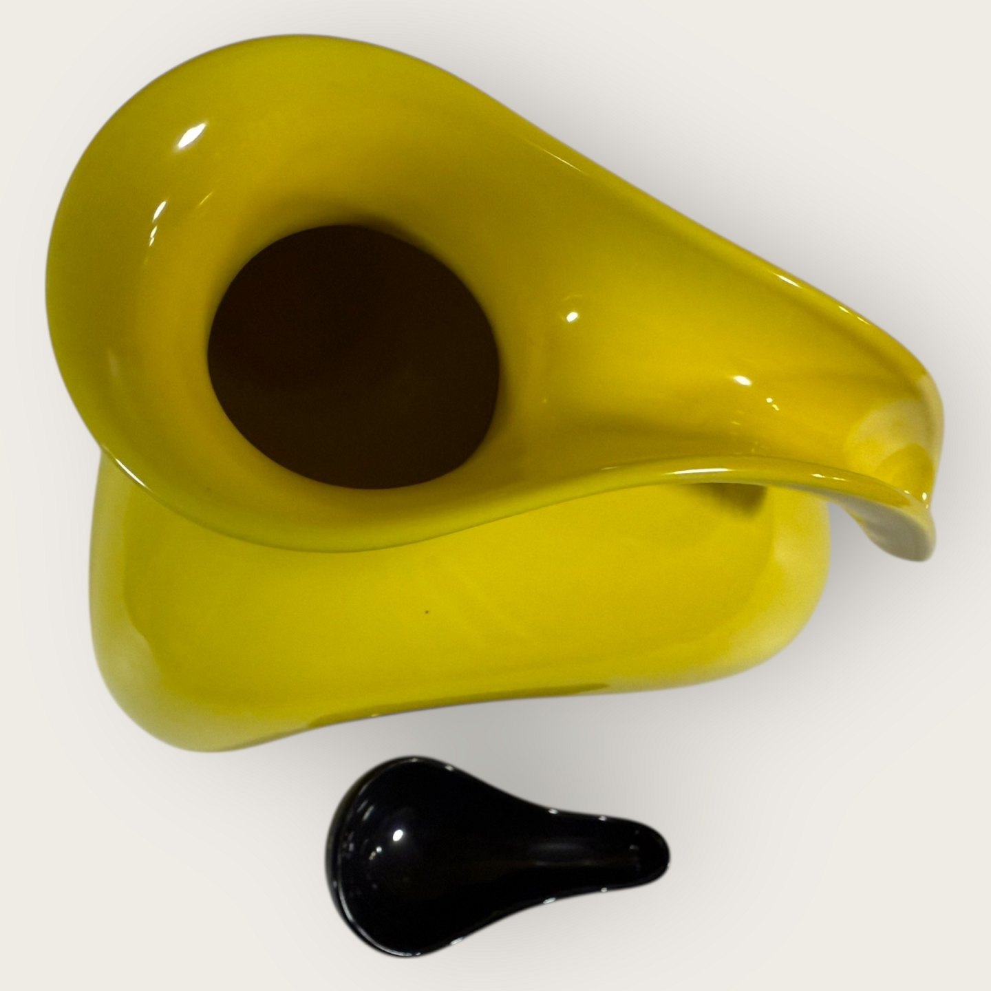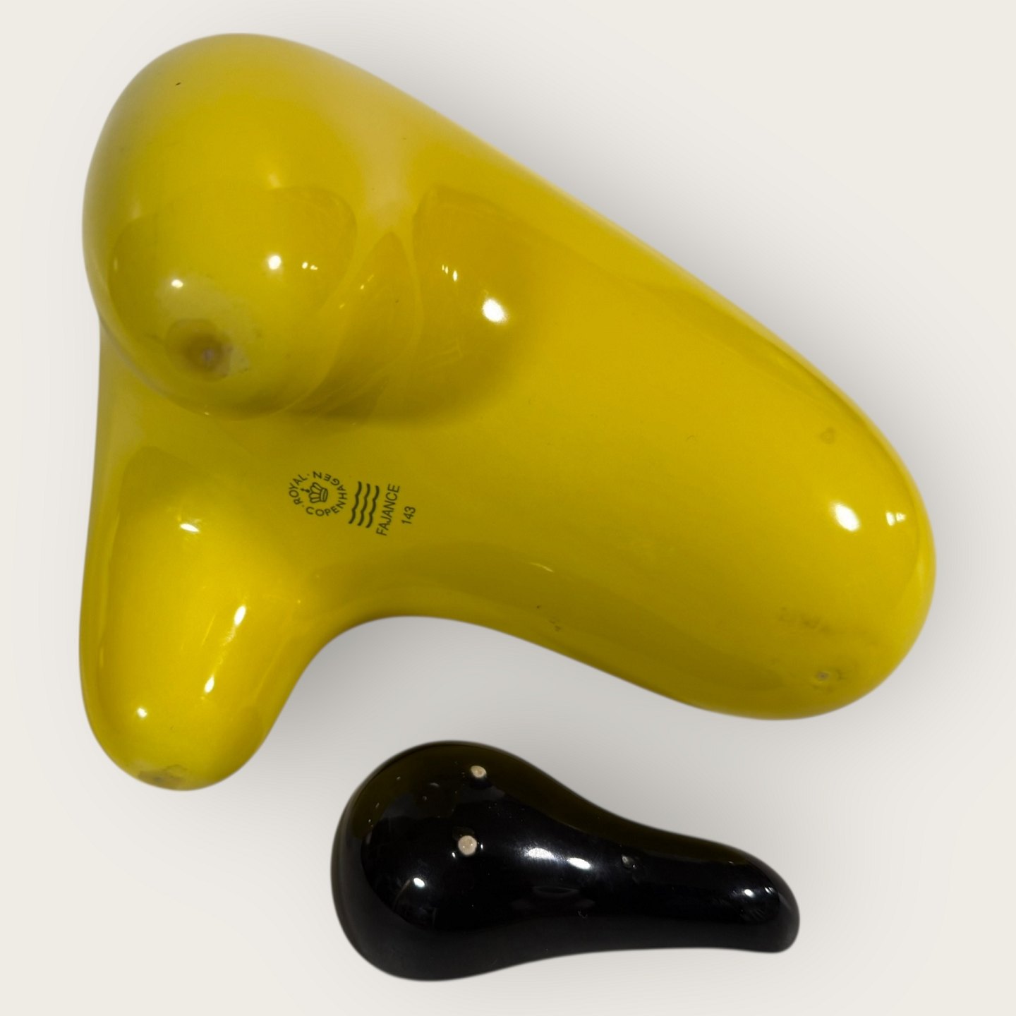 Royal Copenhagen, Fajance, gul kande med sort låg, # 143, Design Ole Jensen, låget fungerer også som måleske, Mål: ca. 20x19x15cm, 1. sortering *Perfekt stand*Lager: 1