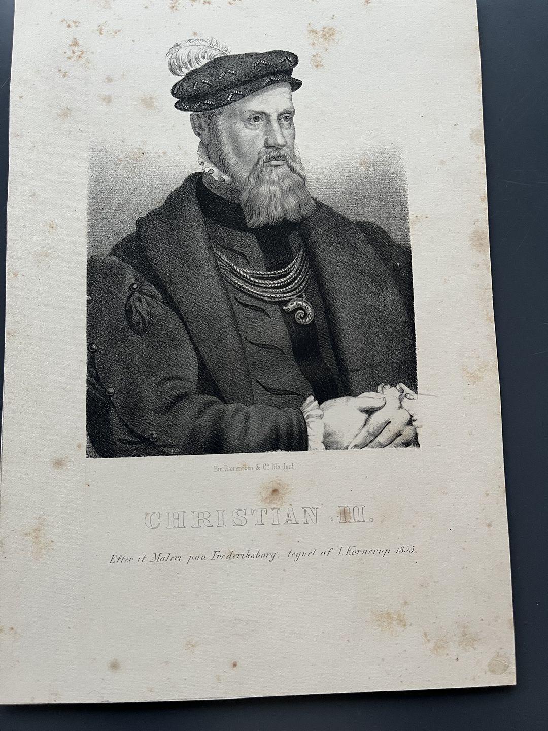 Emilius Bærentzen (1799-1868):Portræt af HM Kong Christian III af Danmark og Norge (1503-59)