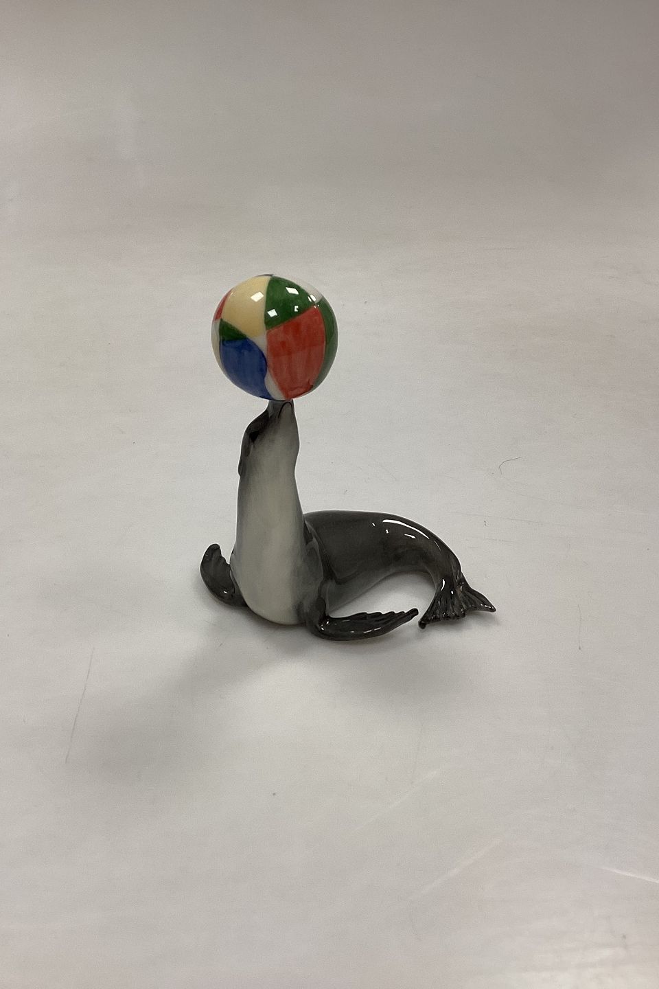 Royal Copenhagen Figur - Søløve med Bold No. 202. Figur fra Mini Cirkus Kollektionen. Designet af Svend Vestergaard fra 2015-2019.Måler 10 cm / 3,93 in.