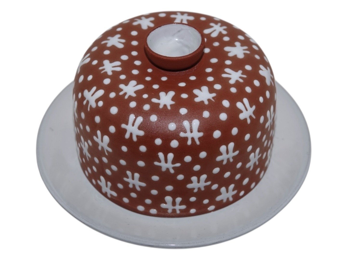 Zeuthen keramik, rund smørskål.Diameter på underfad 15,0 cm., diameter på skålen 9,0 cm.
