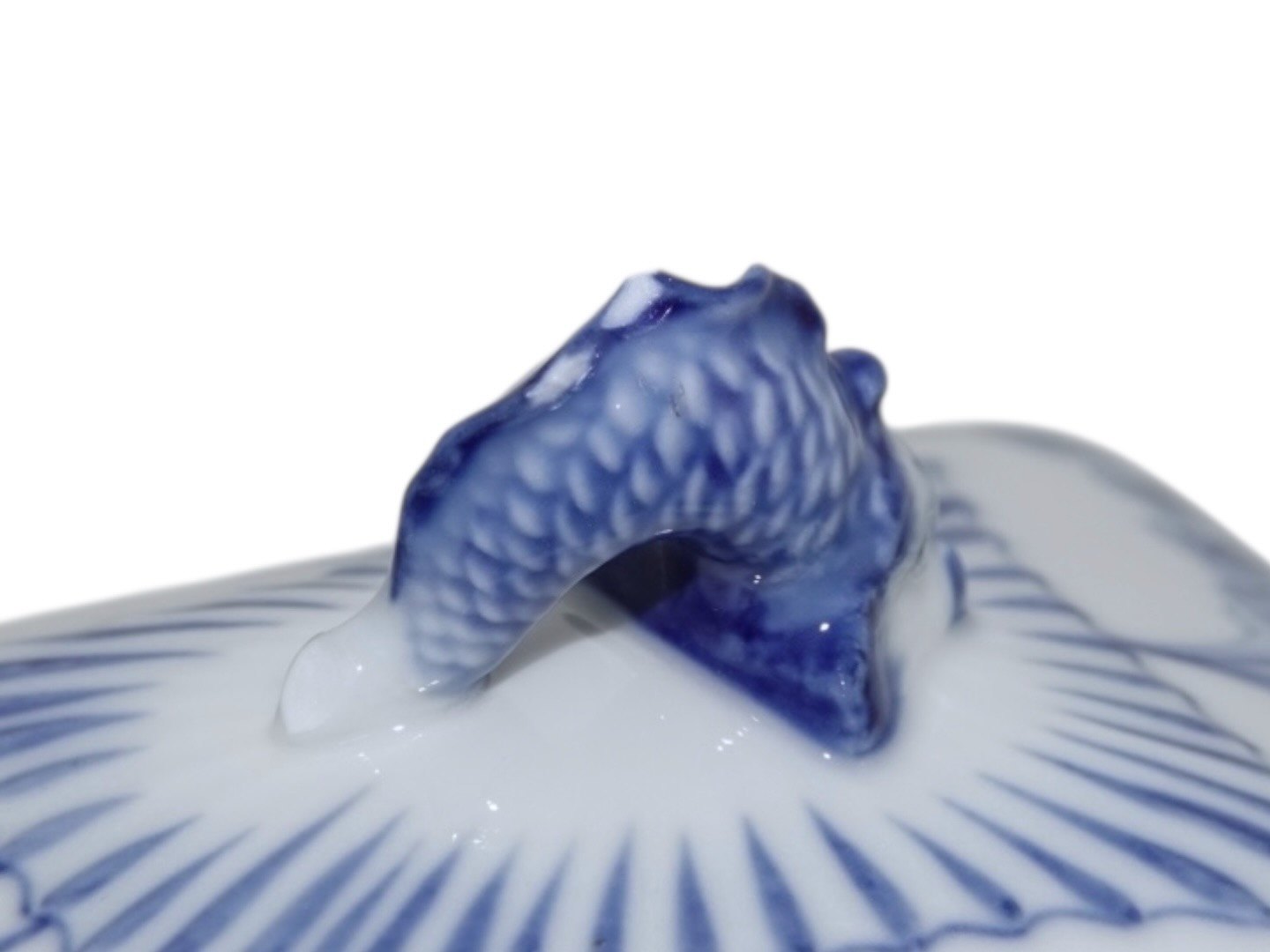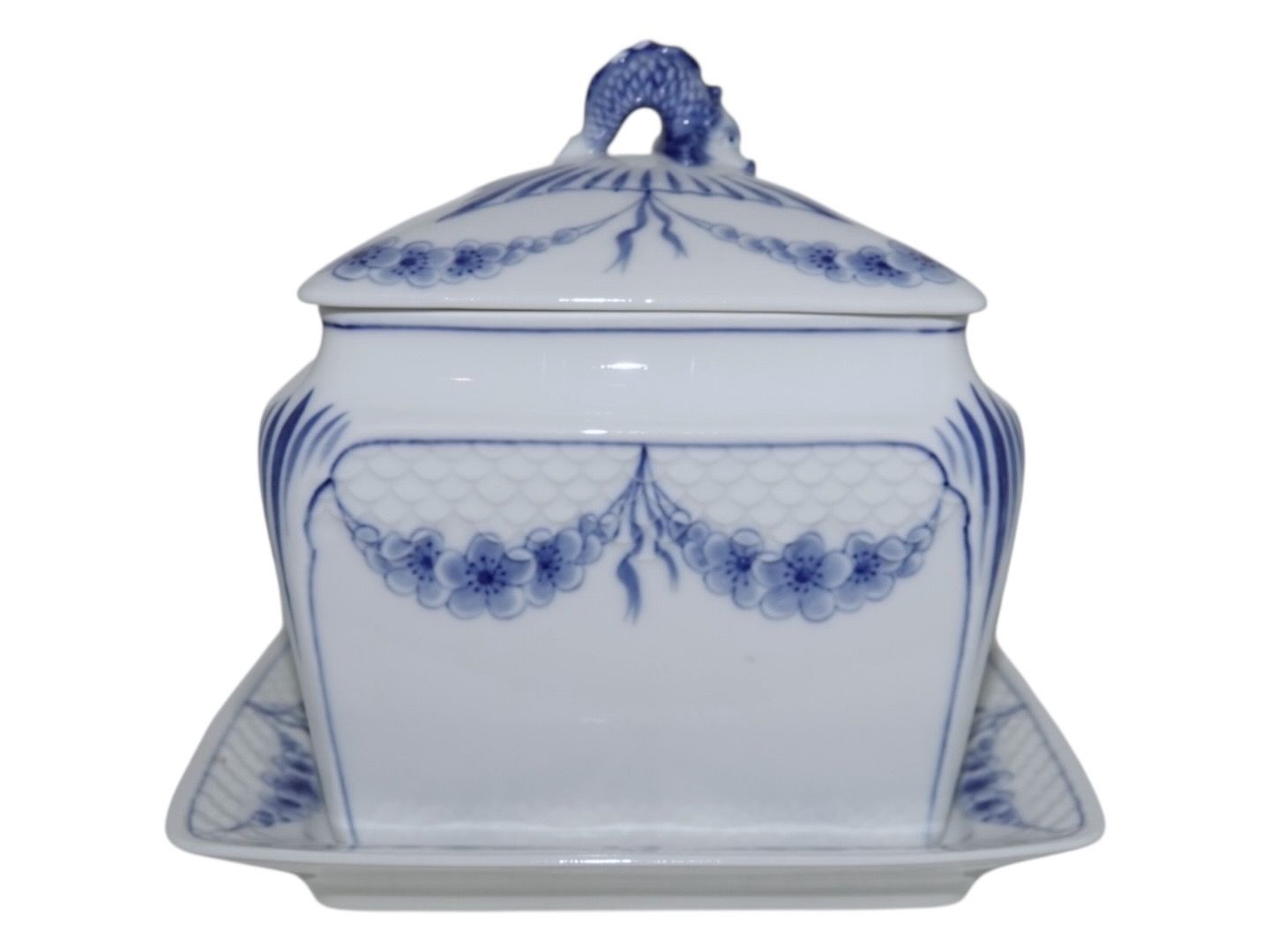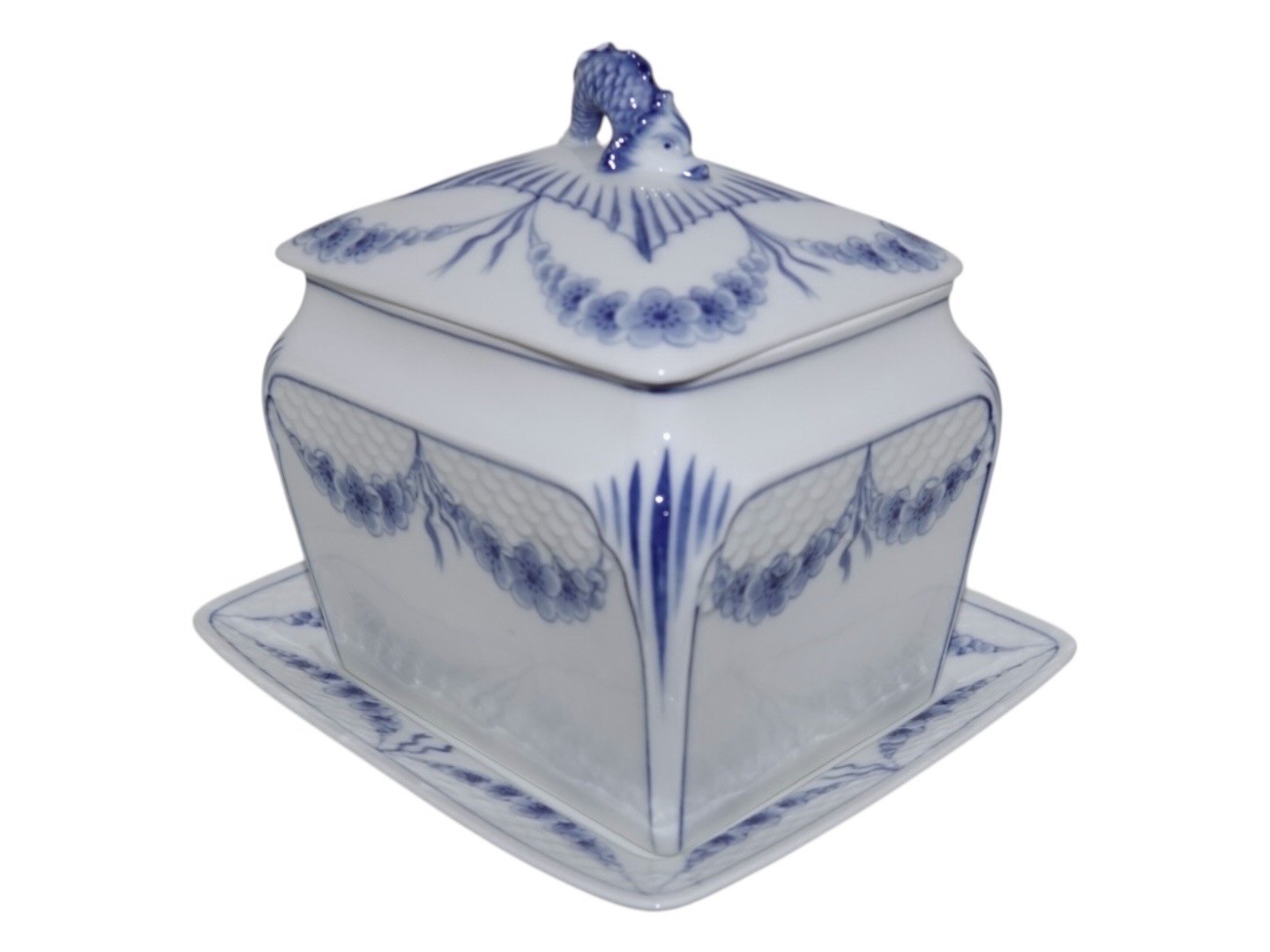 Bing & Grøndahl Empire, sjælden kiksespand med tilhørende underfad.Fabriksmærket viser, at denne er fra mellem 1915 og 1948.