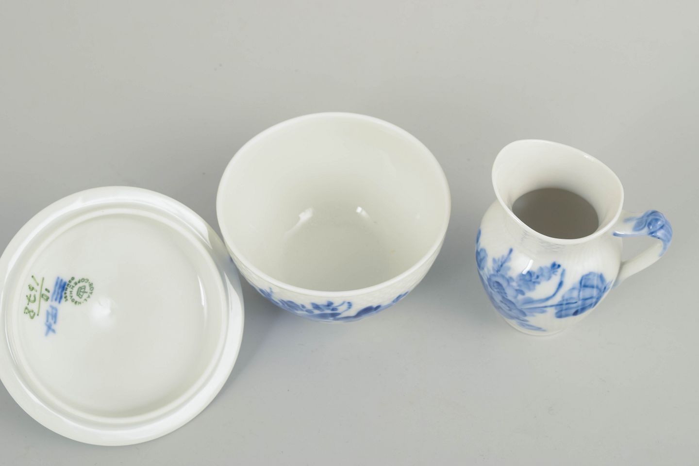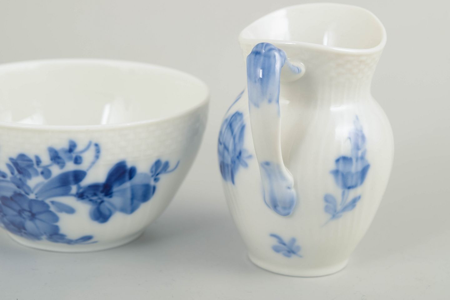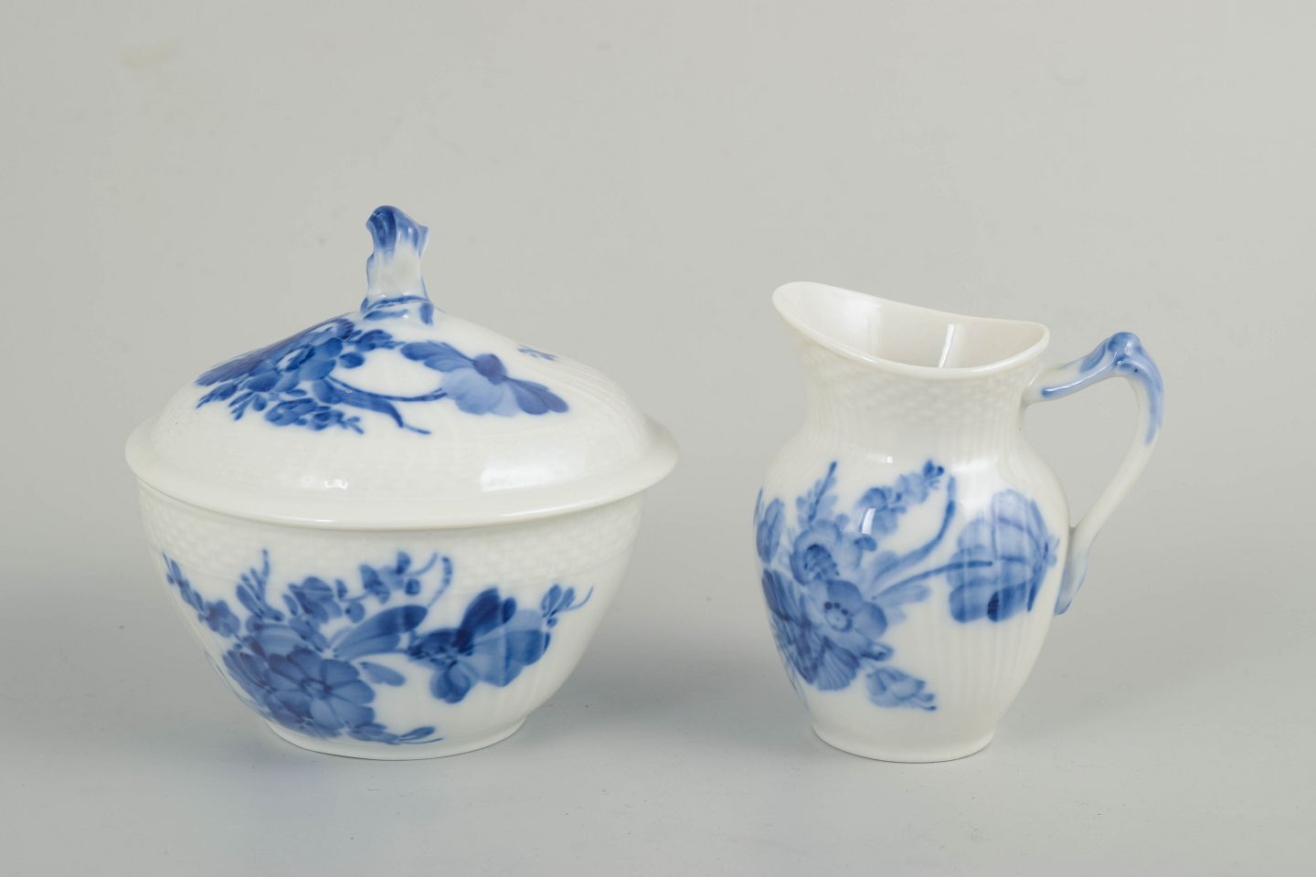 Royal Copenhagen, blå blomst flettet sukkerskål og flødekande.Sæt bestående af en sukkerskål med låg i glaseret porcelæn med håndmalet underglasurdekoration i det klassiske blå blomst flettet mønster, Model 10/1678 og 10/1537.