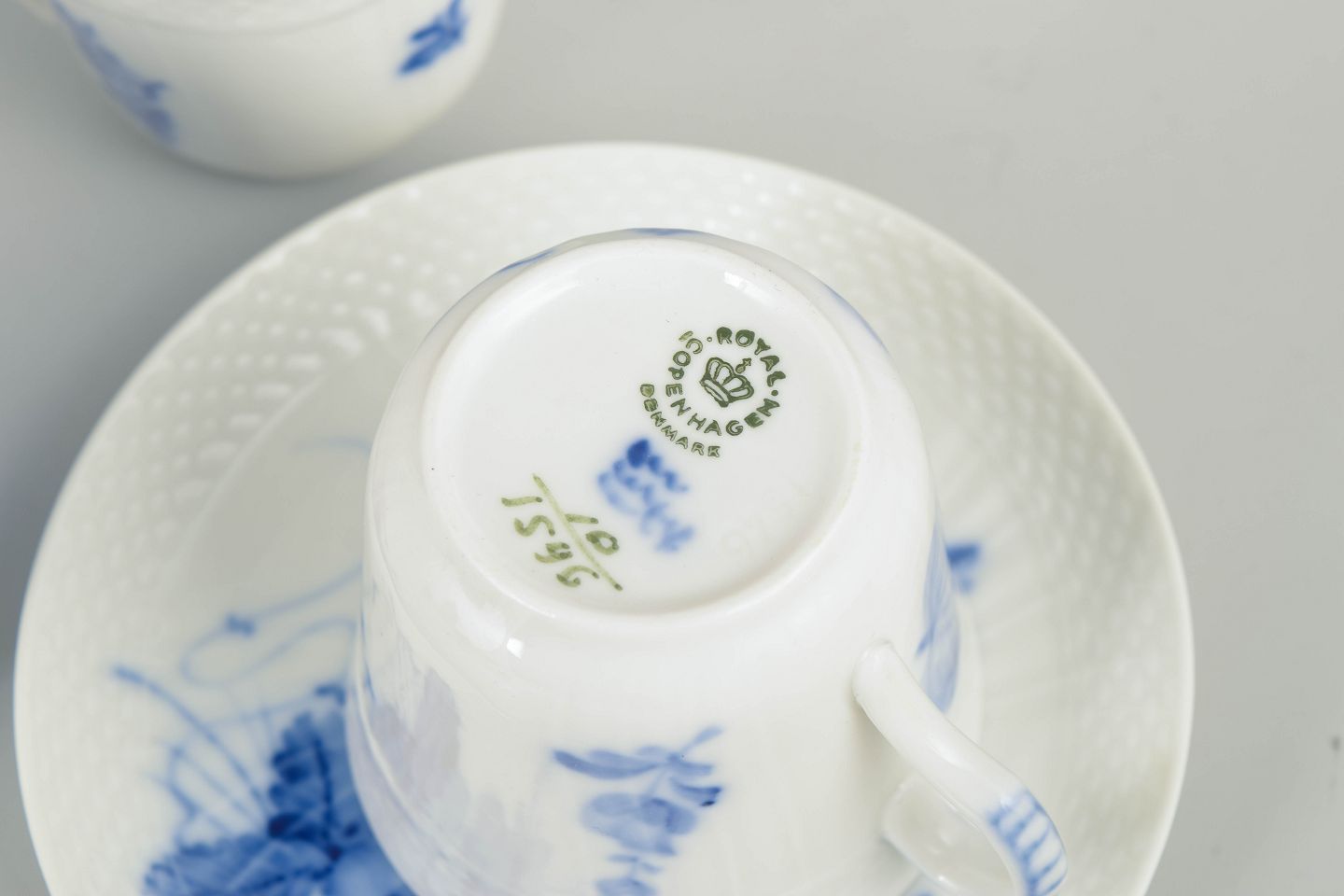 Dimensioner: Kop H. 6 cm, D. 8 cm. Underkop D. 12 cm.