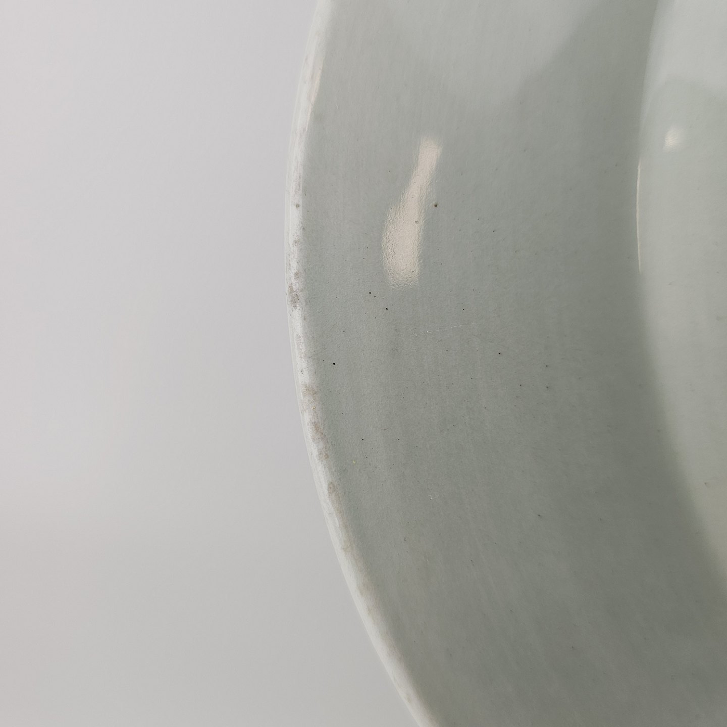 Stel i lysegrøn fajance med natur dekoration og flettet kant