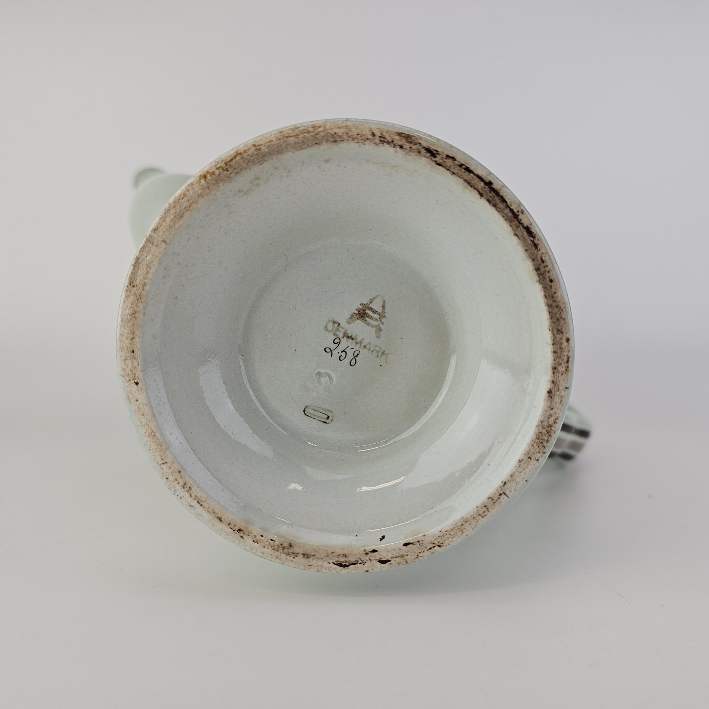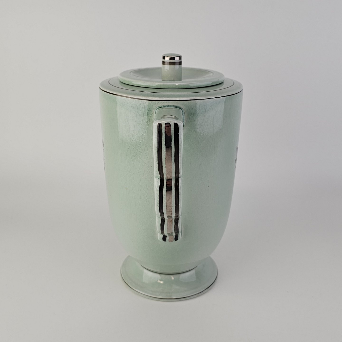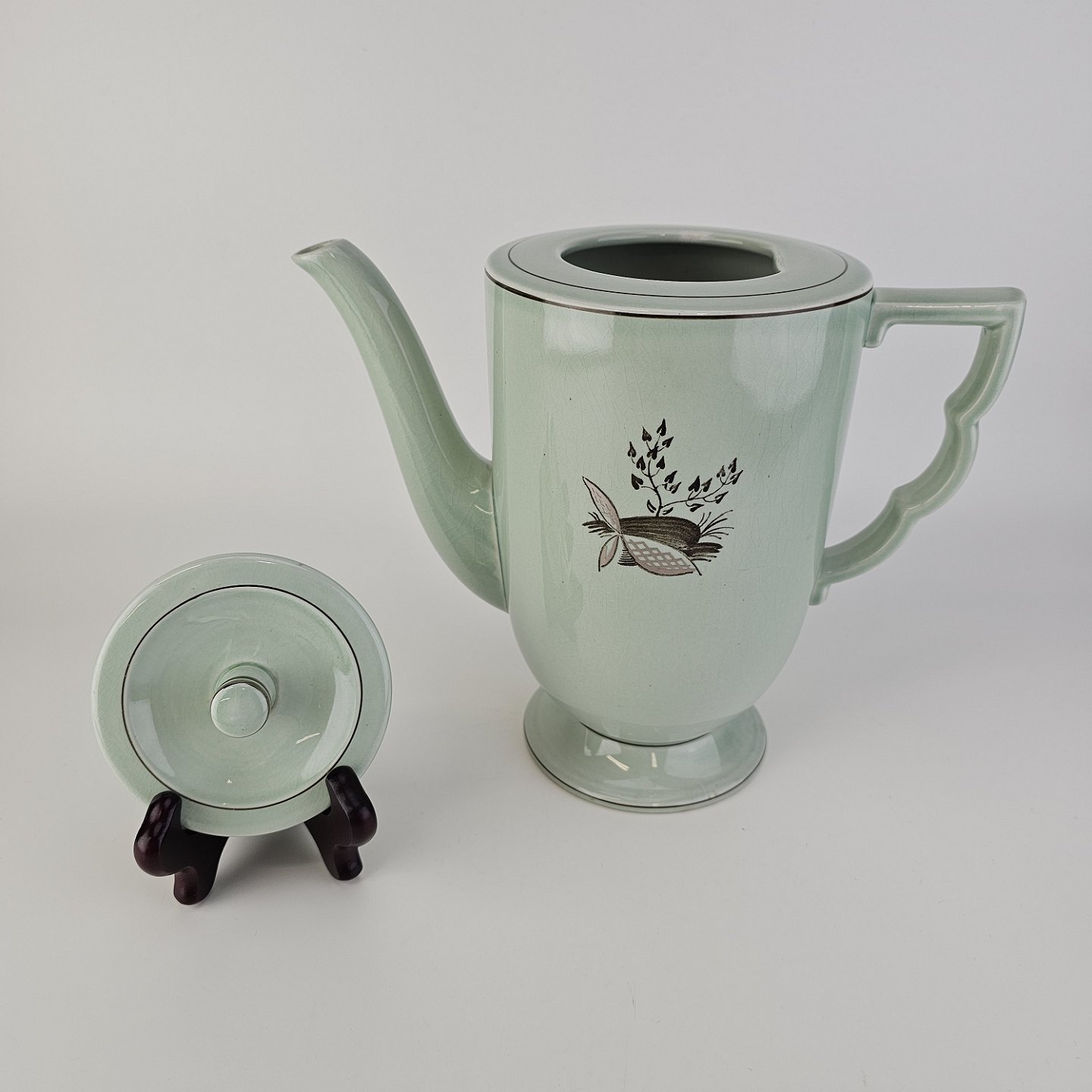 Stel i lysegrøn fajance med natur dekoration og flettet kant