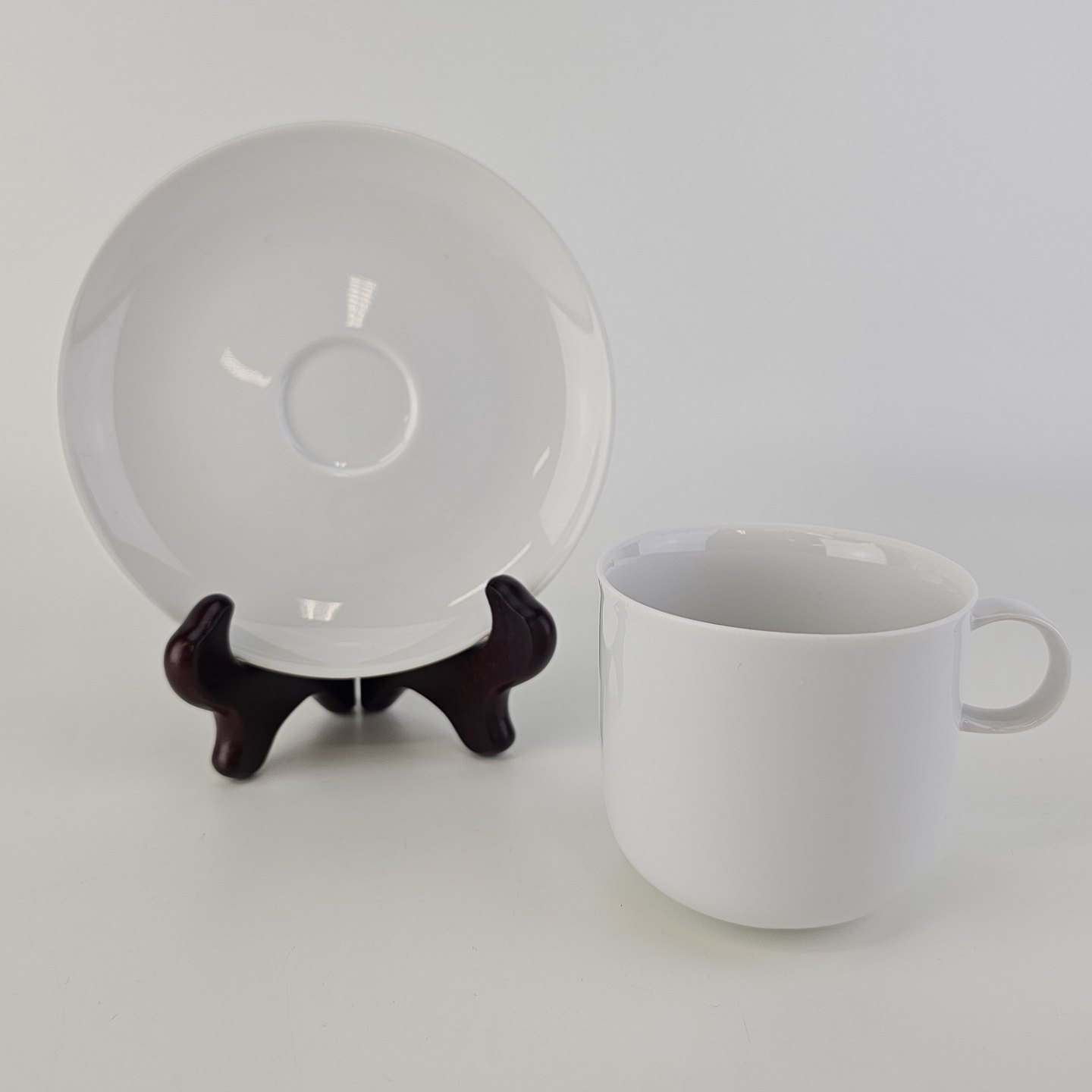 Kop og underkop i hvidt porcelæn fra stellet Alev Siesbye Hvid/LedaFormgiver Alev Siesbye