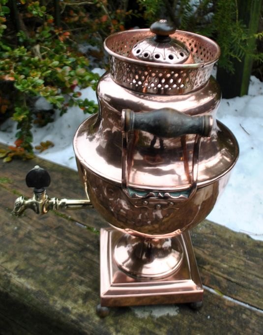 Dansk empire themaskine, 19. årh. Med håndtag i træ. Med hane af messing. H.: 36 cm.Emne nummer: 28908