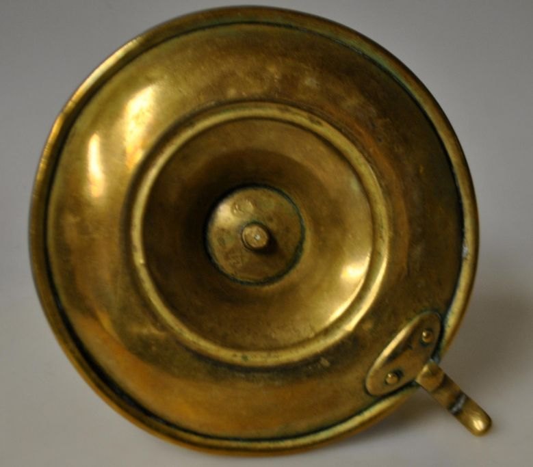 Kammerstage i messing, 1848 - 1863. Kobbermøllen, Flensborg. Med håndtag. Stemplet i under bund med kong Frederik VII's monogram (1848 - 1863). H.: 14 cm.Virkelig fin stand med flotte stempler.