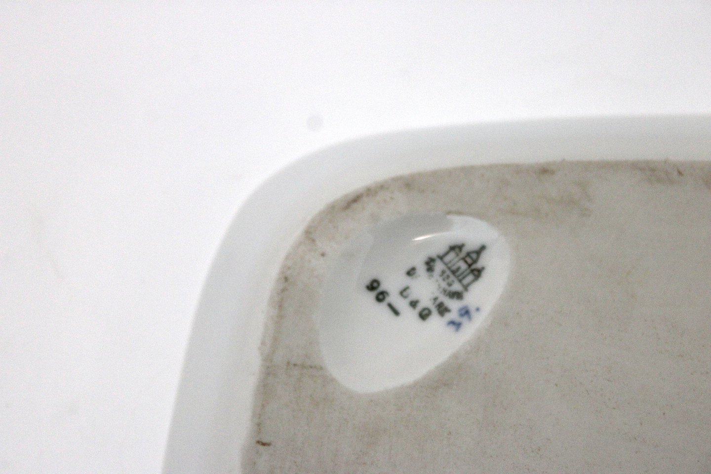 Bing & Grøndahl, Empire, hvidt porcelæn med blå ranker.Aflang bakke til sukker og fløde. Kan bruges som serveringsfad eller spisetallerken. Nr. 96. II. sortering. Fin stand. 27 x 15,5 cm. Pris: 250 kr.