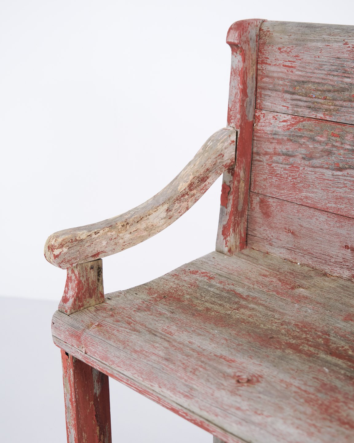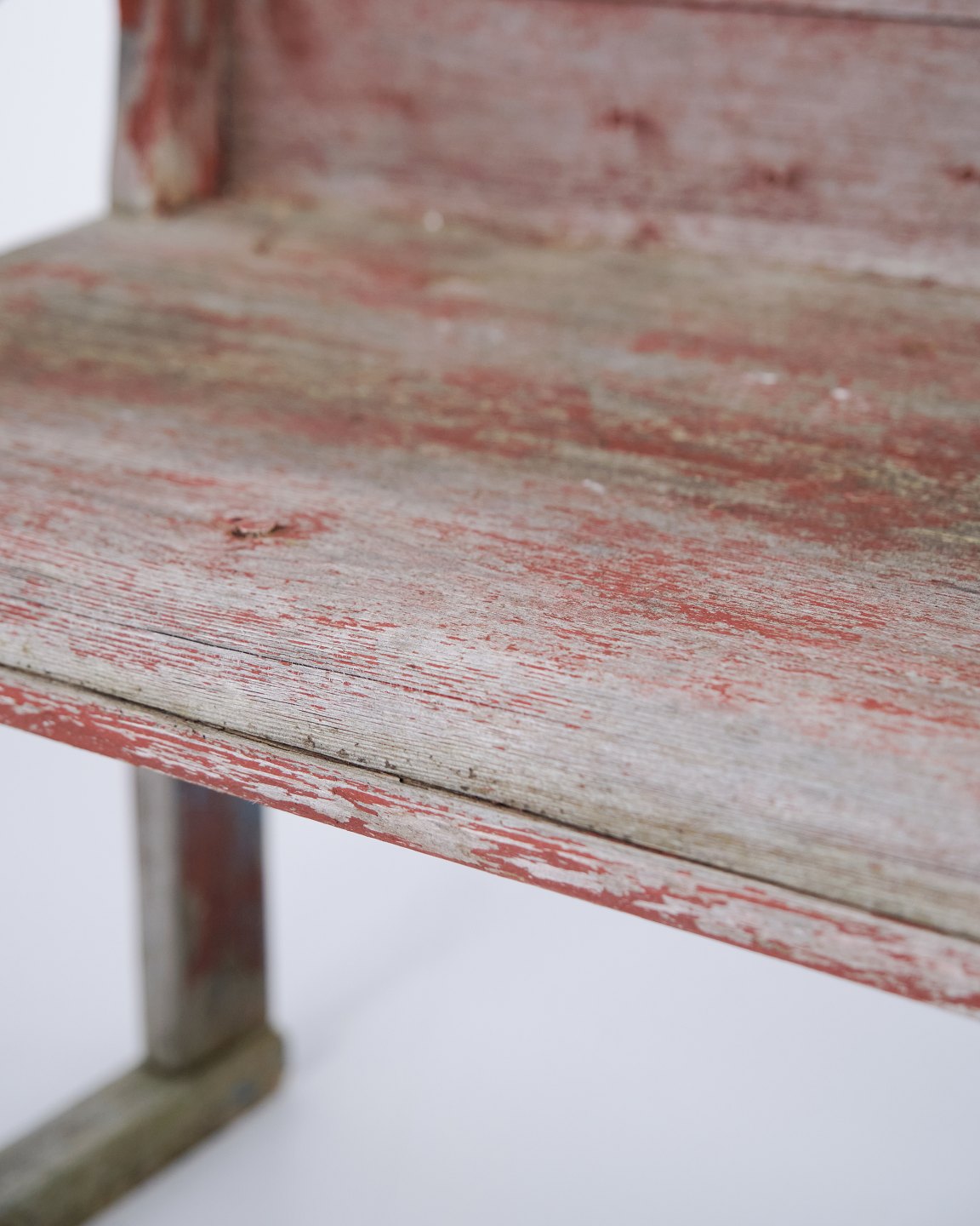 Antik bænk fra 1860’erne i original rødmalet fyrretræ. Antik rødmalet bænk 1800-tallet.— Materiale: Fyrretræ