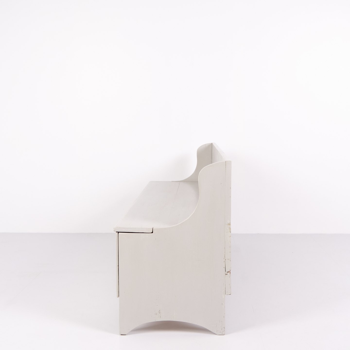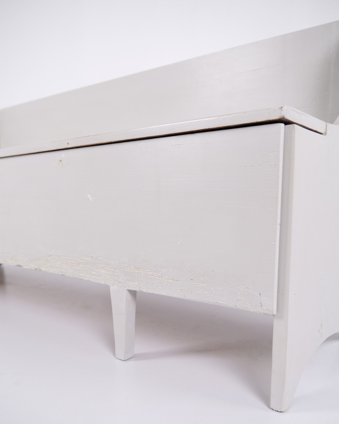 Antik slagbænk 1890’erne i gråmalet fyrretræ med opbevaring. Antik opbevaringsbænk 1800-tallet.— Type: Slagbænk med opbevaring