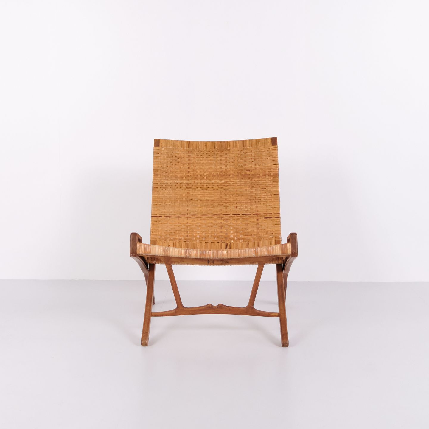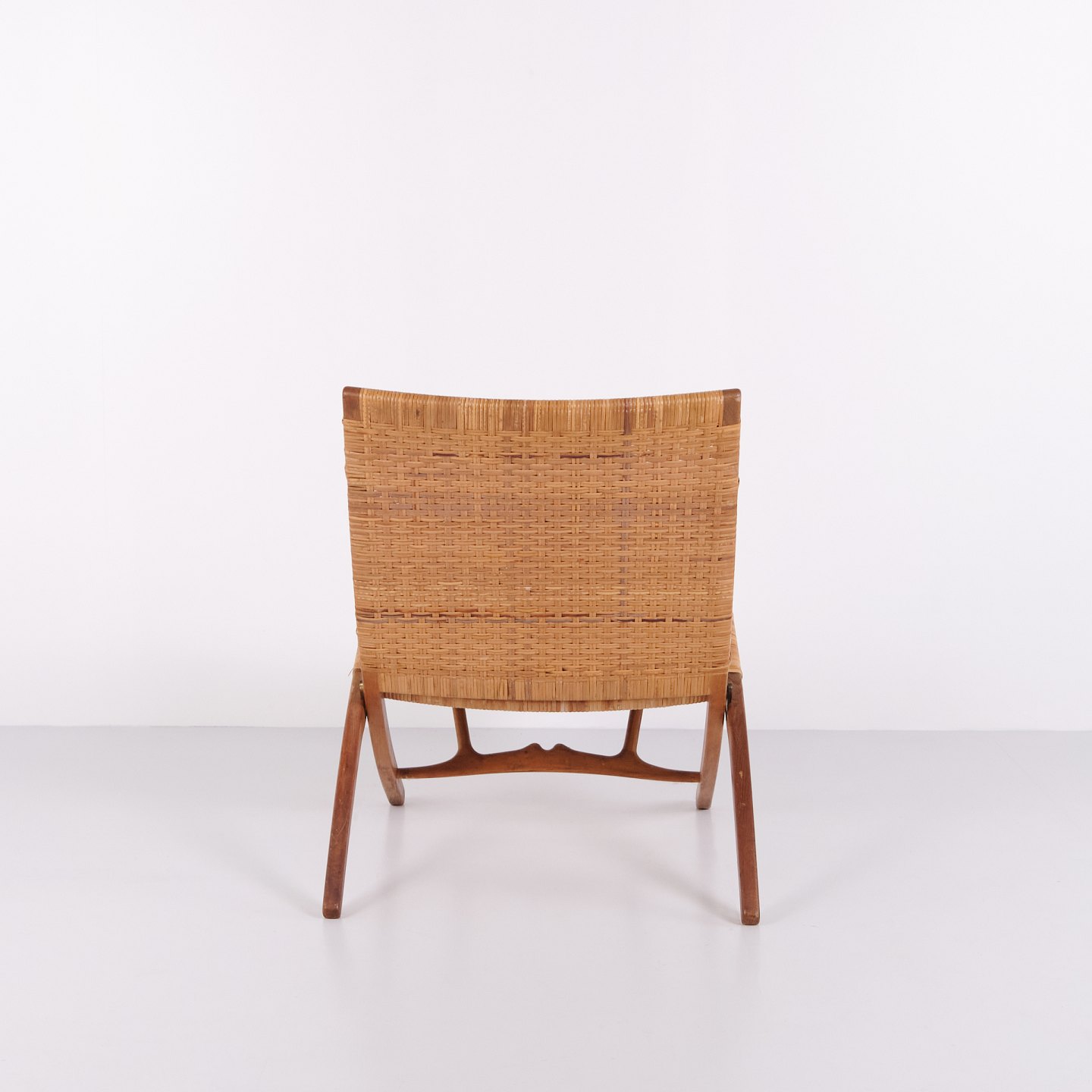 Wegner JH512 Kaminstolen af Johannes Hansen i patineret egetræ med originalt flet og producentstempel. Dansk design 1950’erne.— Designer: Hans J. Wegner