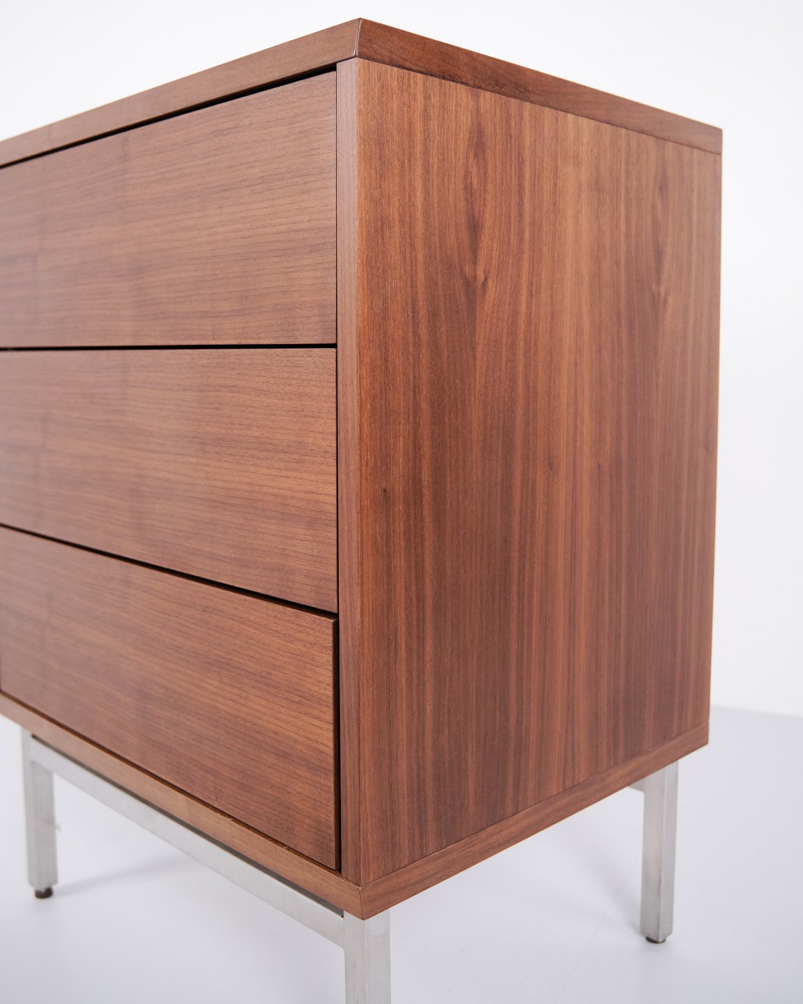 Skovby kommode i valnød med 3 skuffer og metalben. Moderne dansk møbel fra Skovby Møbelfabrik.— Type: Kommode med 3 skuffer