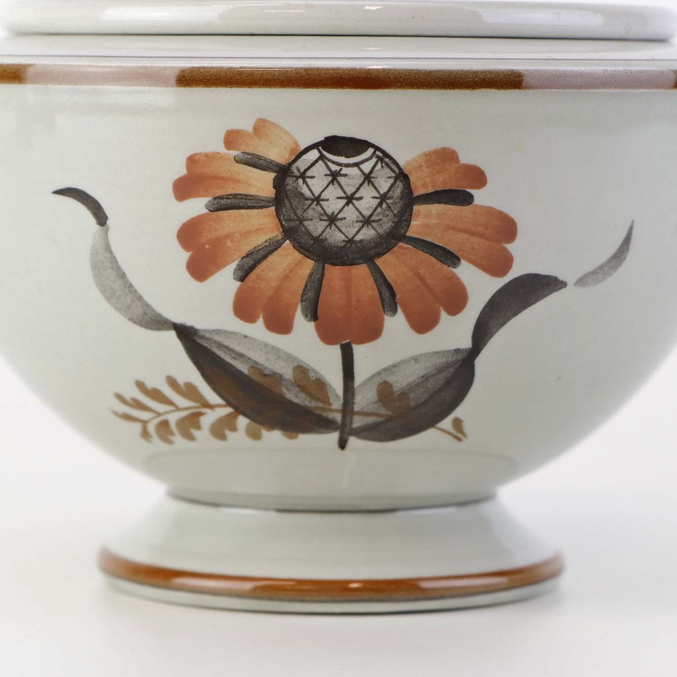 Lågskål til sukker i fajance fra stellet Kirsten, som blev fremstillet i perioden 1934-1957. Nr. 263Fomgiver Nils Thorsson