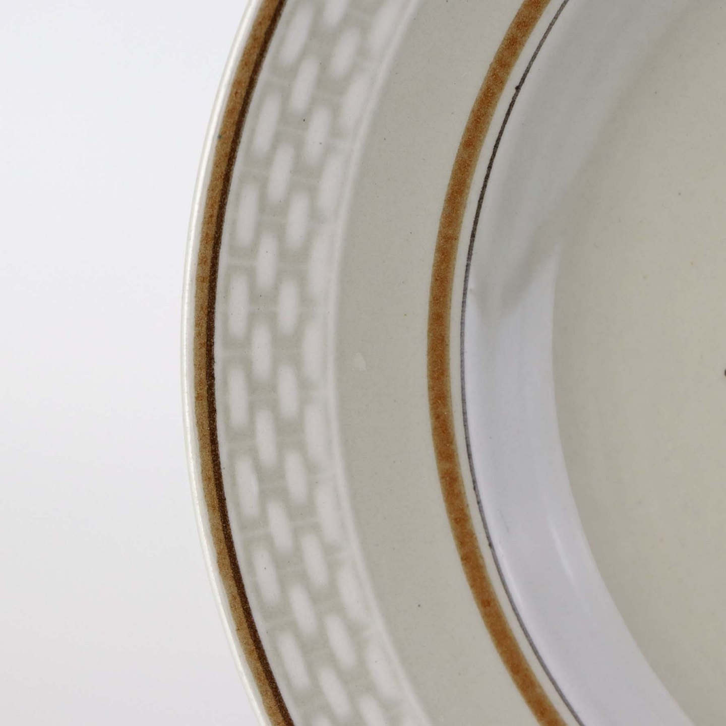 Desserttallerken i fajance fra stellet Kirsten, som blev fremstillet i perioden 1934-1957.Fomgiver Nils Thorsson