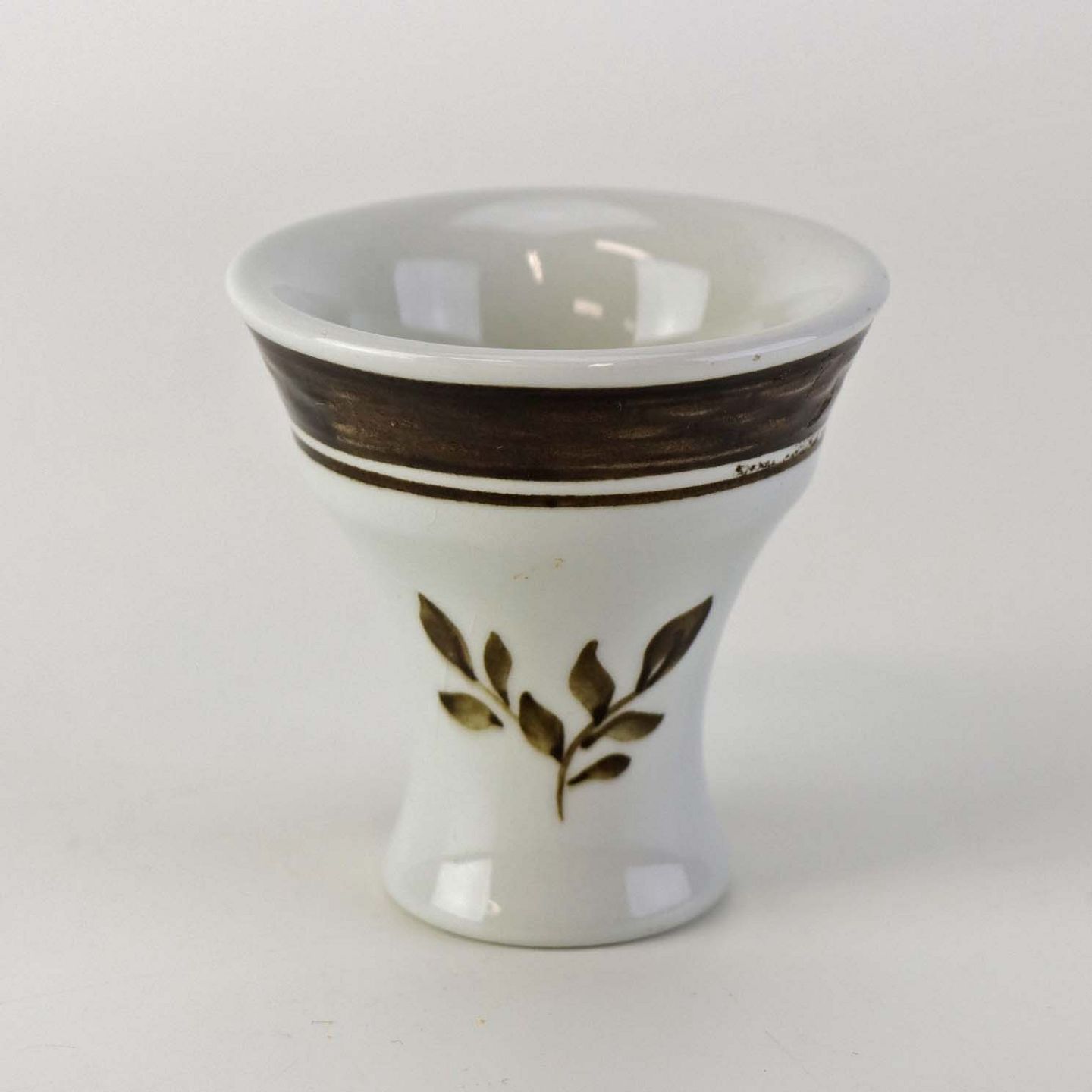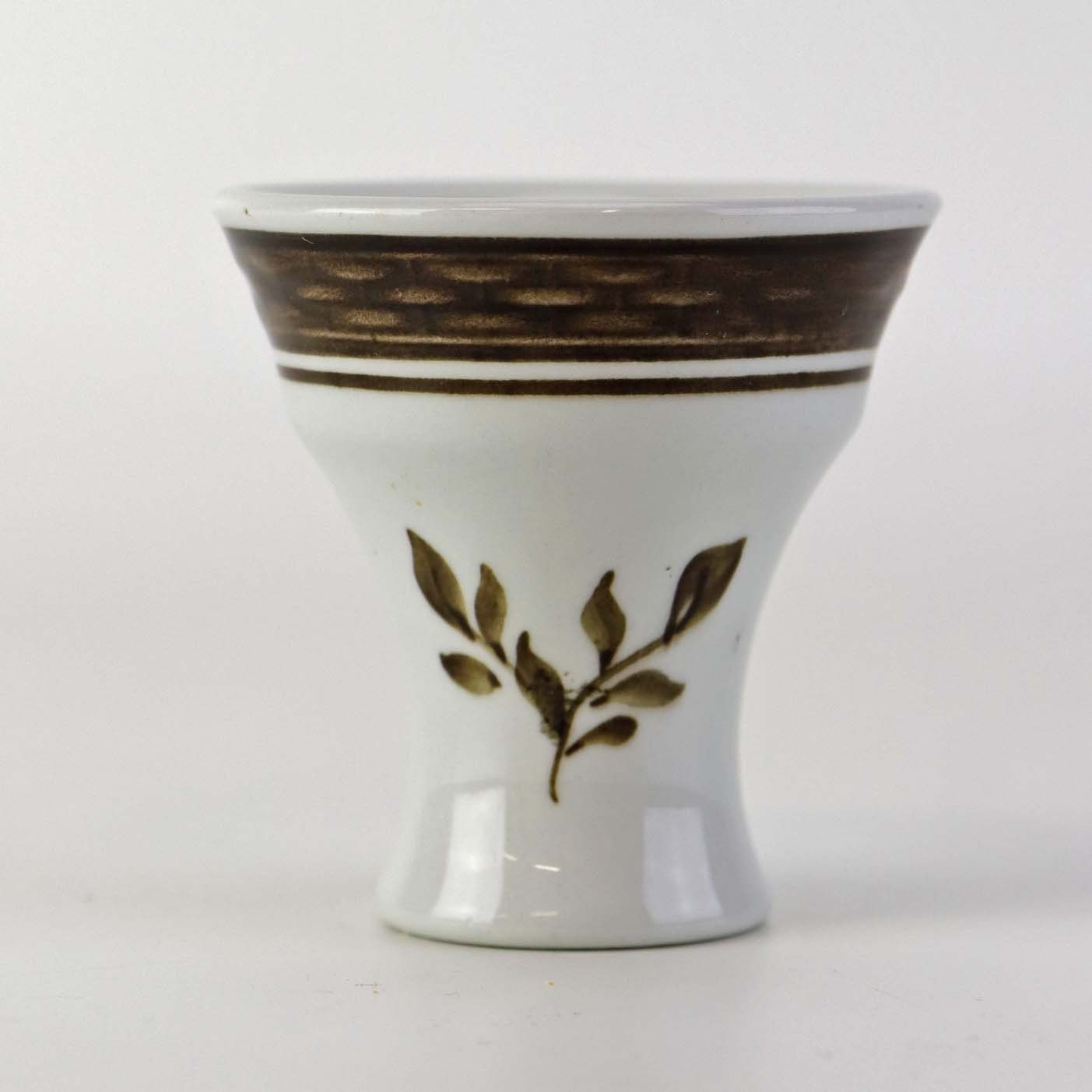 Æggebæger i fajance fra stellet Brun Tranquebar fra år 1919. Nr 45/1006Fomgiver Chr. Joachim