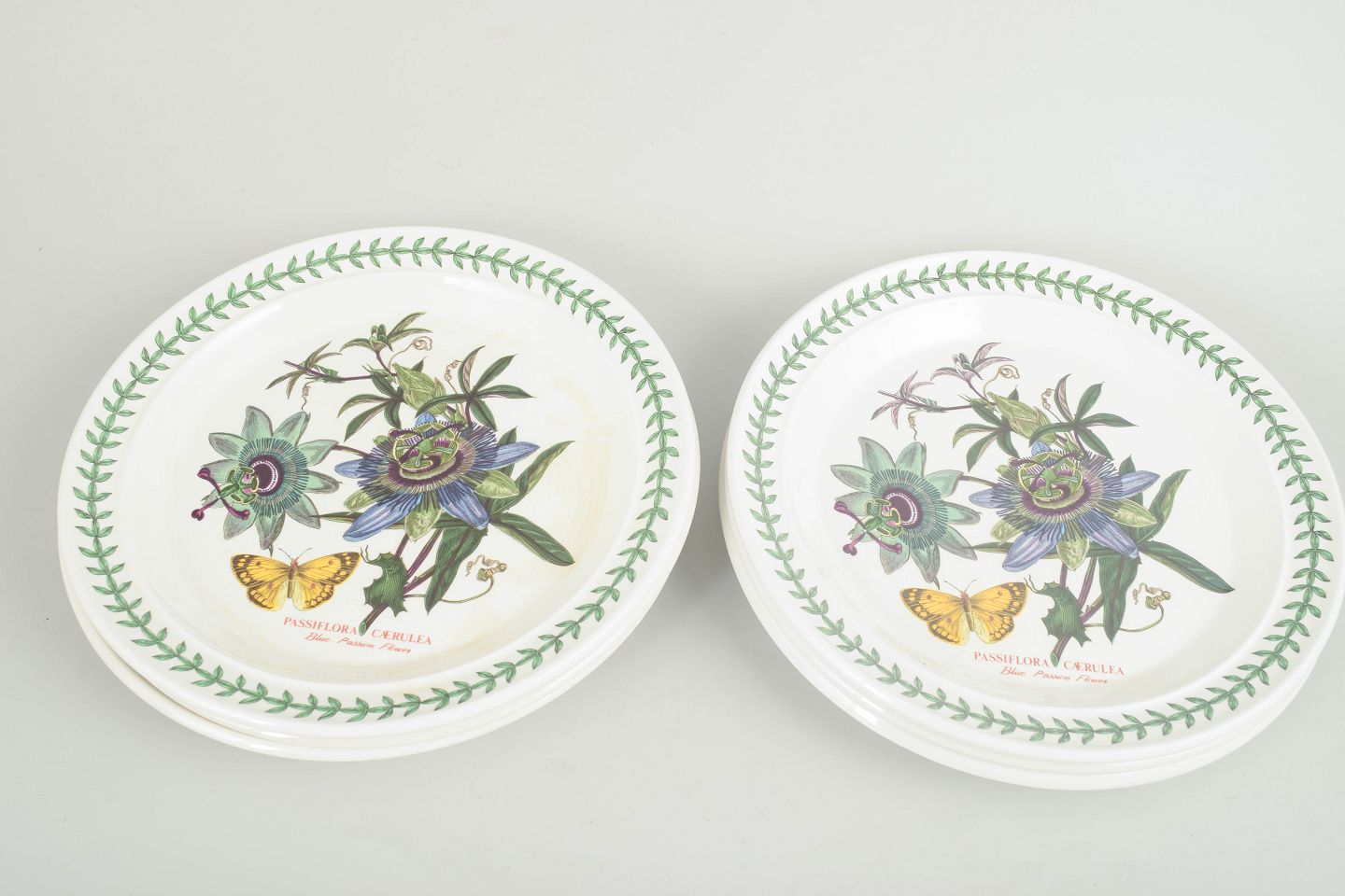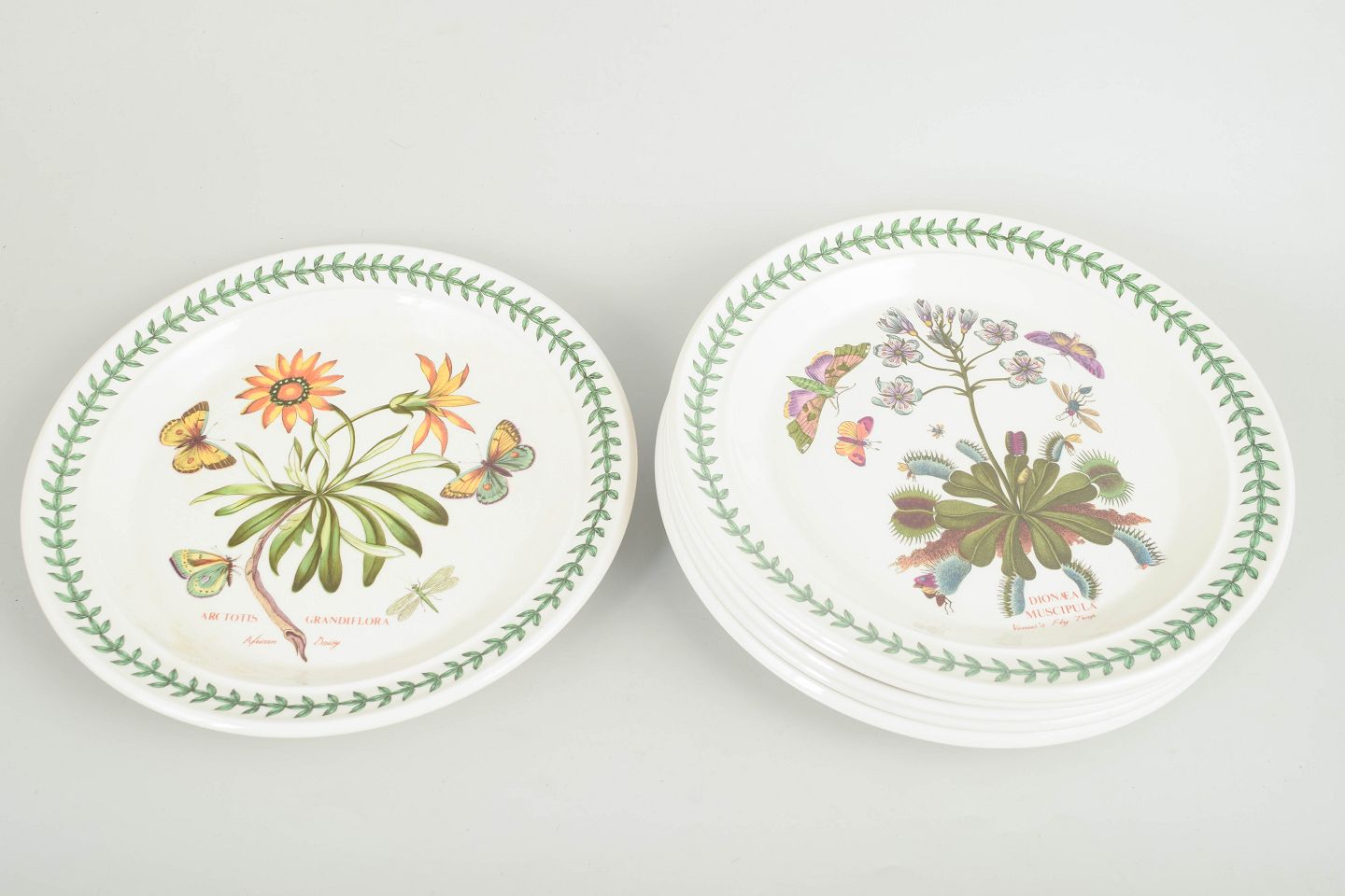 Portmeirion England, set of 6 dinner plates.Set of 6 large faience dinner plates by Portmeirion, decorated in “The Botanic Garden” series with a botanical motif and the characteristic green leaf border.