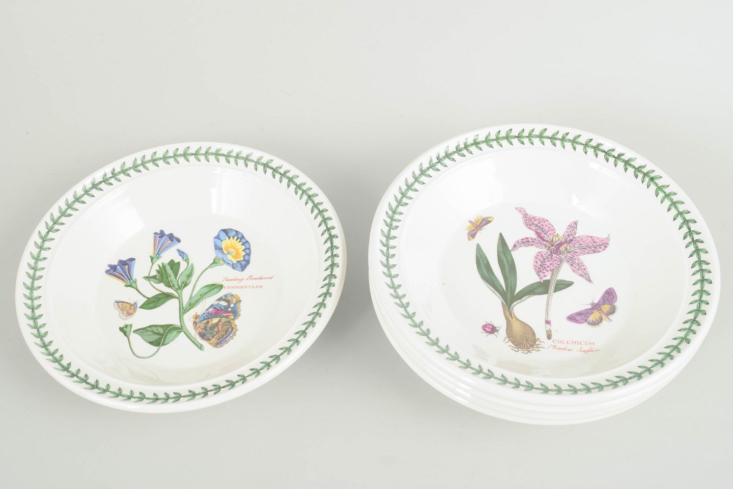 Portmeirion England, set of 5 deep plates.Set of 5 deep faience plates by Portmeirion, decorated in “The Botanic Garden” series with botanical motifs and the characteristic green leaf border.
