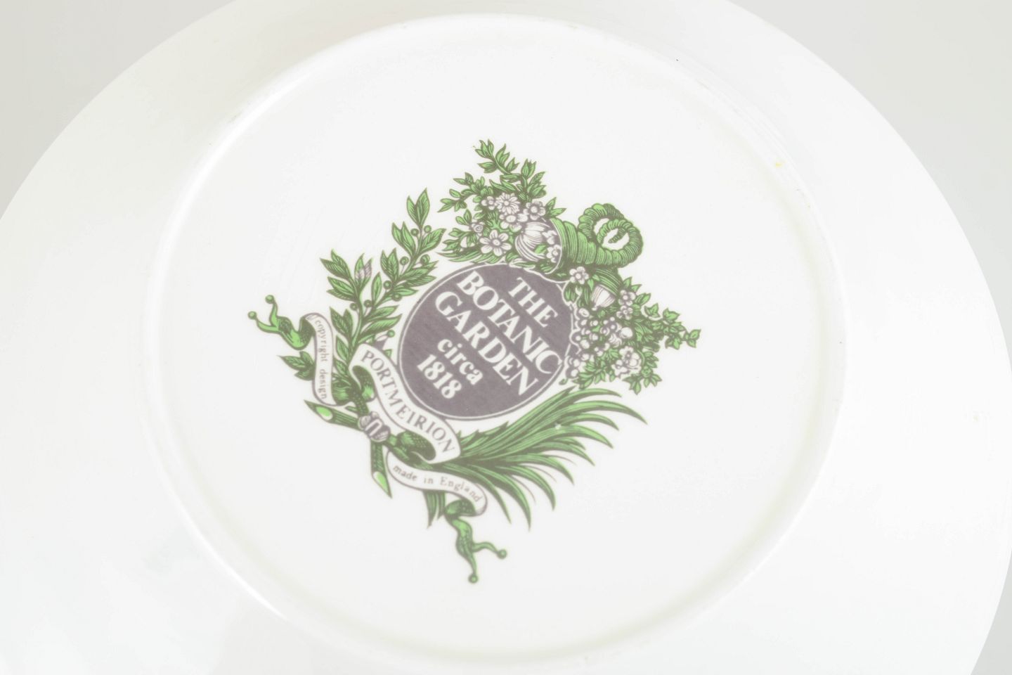 Portmeirion er en engelsk producent kendt for dekorativt stentøj og fajance med naturinspirerede dekorationer. “The Botanic Garden” serien tager udgangspunkt i klassiske botaniske illustrationer gengivet i klare farver og kombineret med en grøn bladbort, hvilket har givet serien et tidløst udtryk og gjort den populær blandt samlere gennem flere årtier.