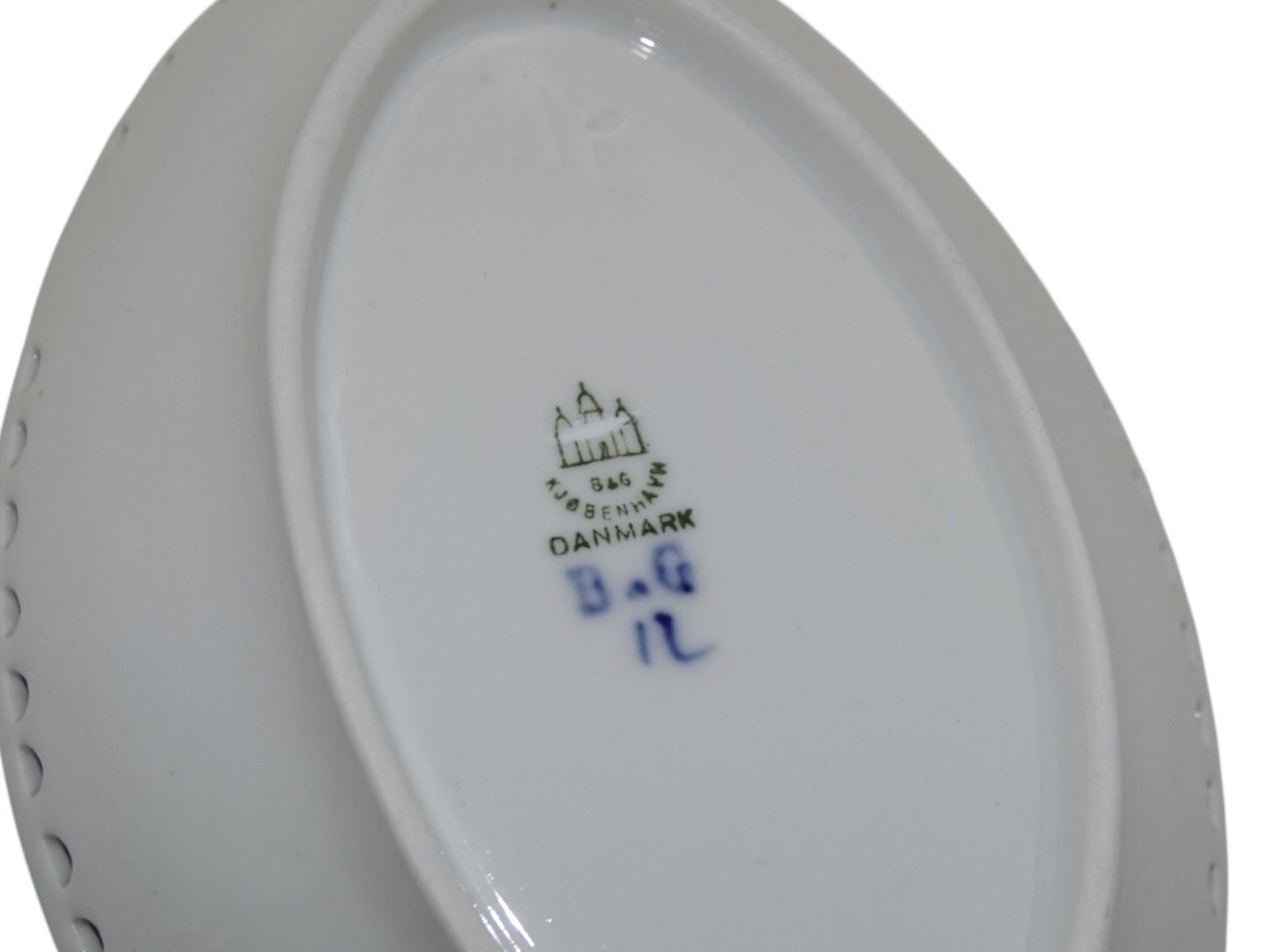 Bing & Grøndahl Blåmalet / Musselmalet, sjældent set mini fad med blondekant.Af fabriksmærket kan det udledes, at disse er produceret mellem 1915 og 1948.
