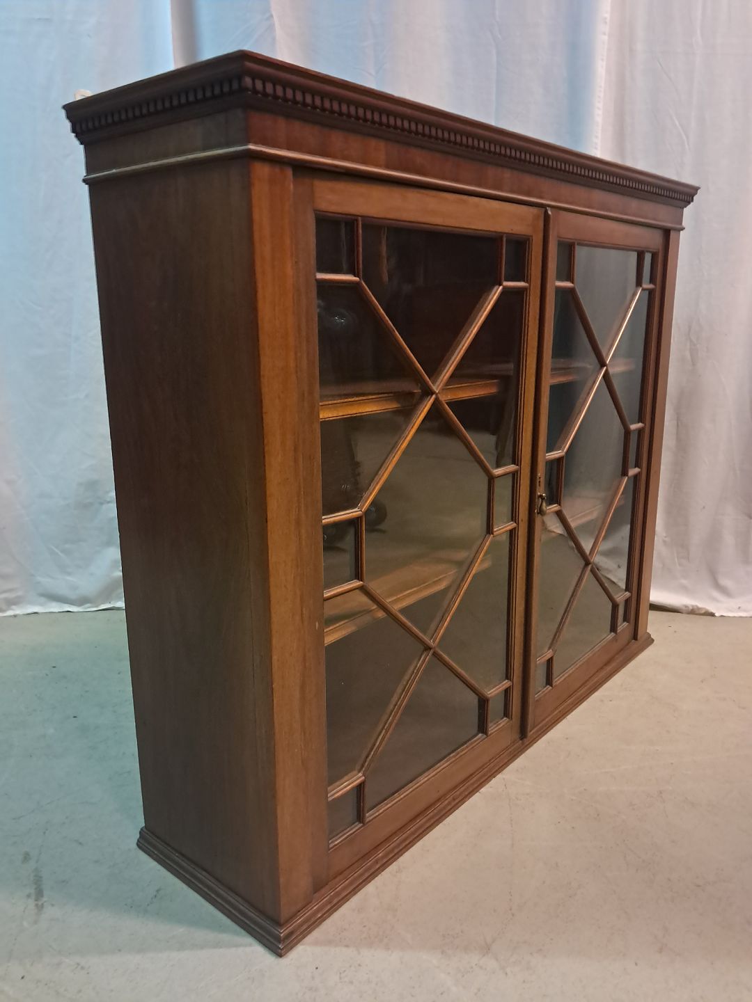 Vægskab i fineret mahogni, fra 1950erne.Det har brugsspor.