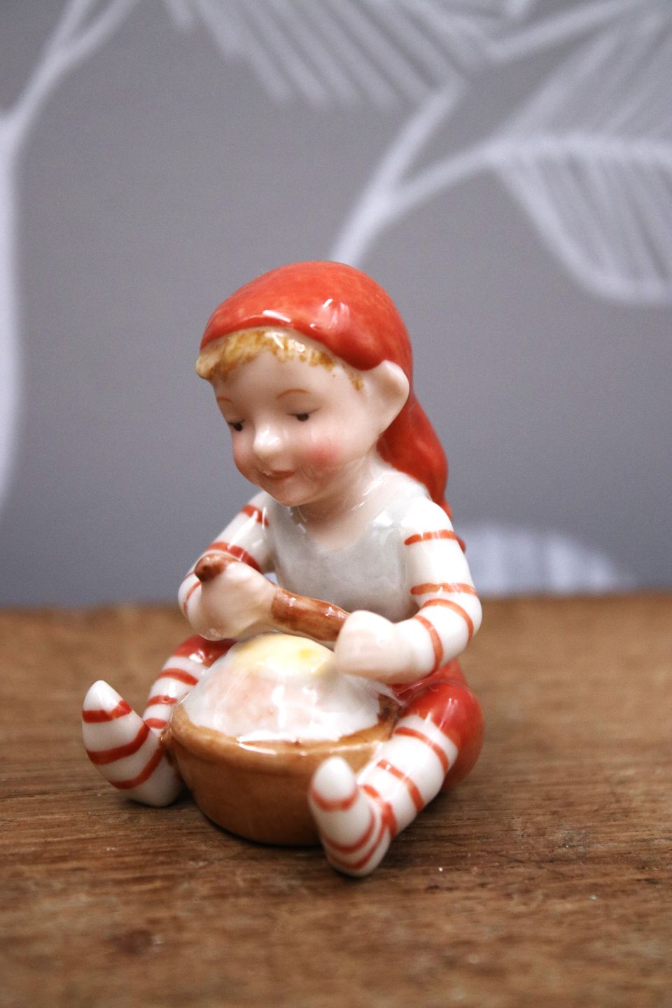 Royal Copenhagen Pixie nisse i porcelæn , nr.178.Nisse dreng med grød. Højde: 4,5cm.