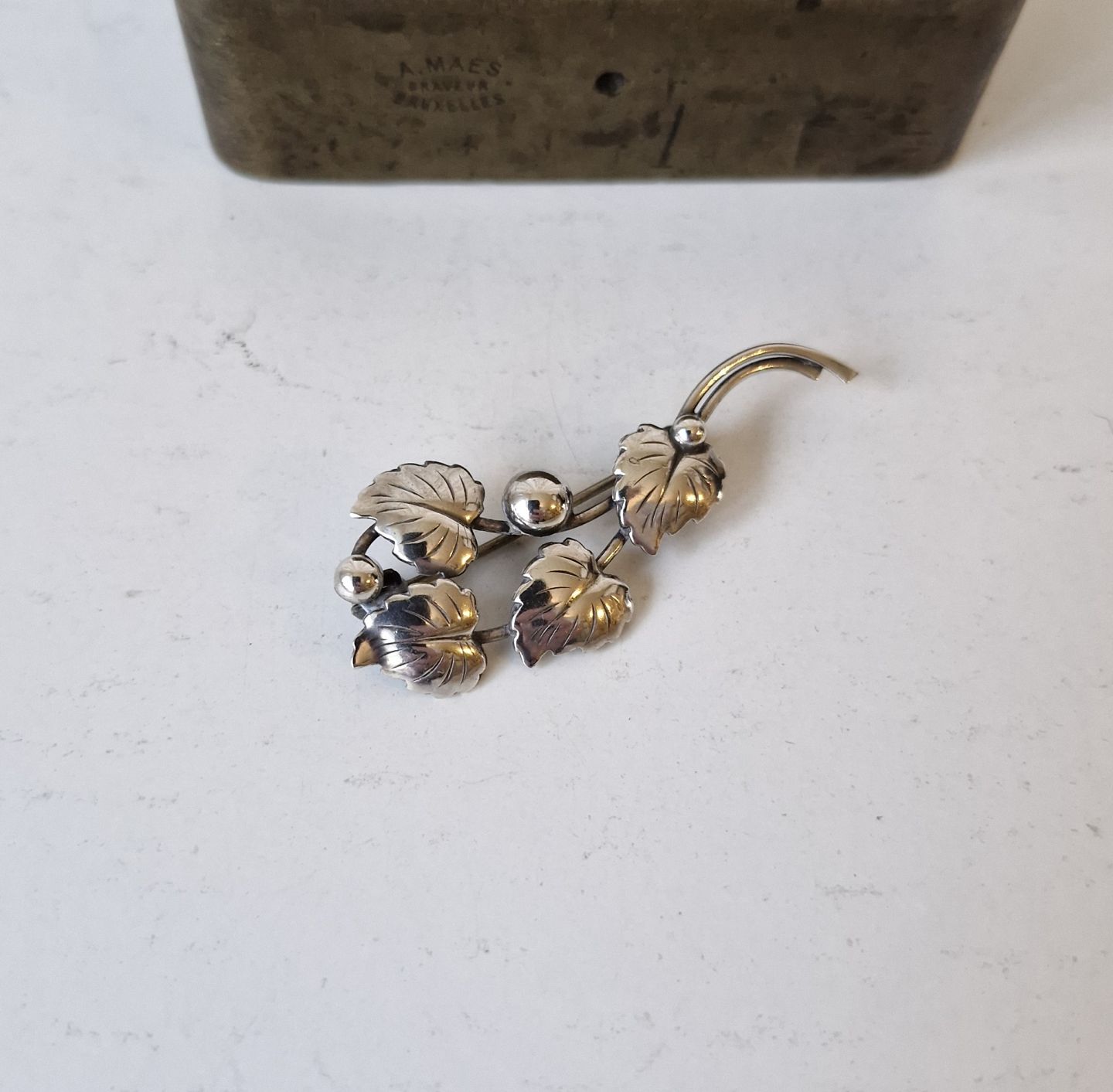 Vintage sølv broche i form af gren med små blade af Hermann SiersbølStemplet: HS - Sterling - Denmark