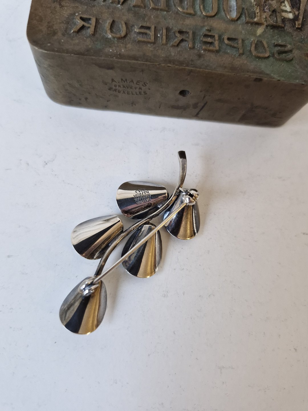N.E.From vintage broche i sterlingsølv i form af gren med bladeStemplet: Sterling - Denmark - N.E.From - 925
