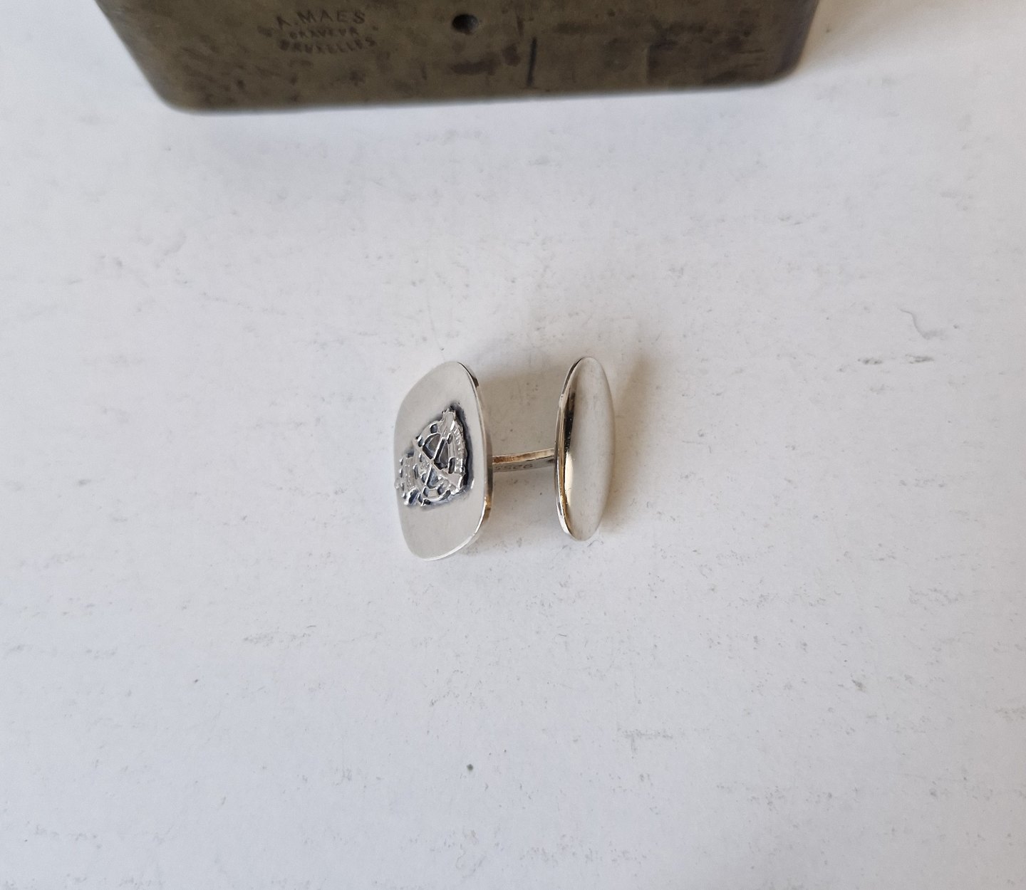 Manchetknapper i sterlingsølv med Ingeniørregimentets logo udført af Hermann SiersbølStemplet: HS - 925