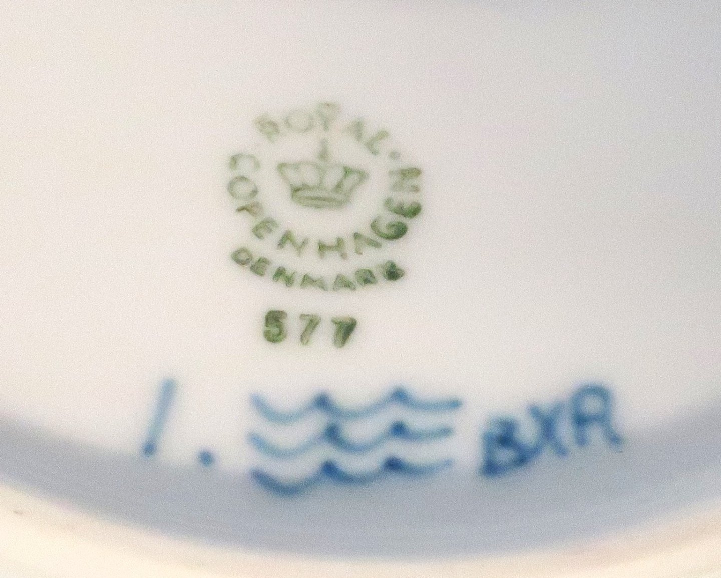 Royal Copenhagen. Musselmalet helblonde. Rund skål. Model 577 (1018). Højde 6 cm. Diameter 21 cm. (2 sortering) Udstiller