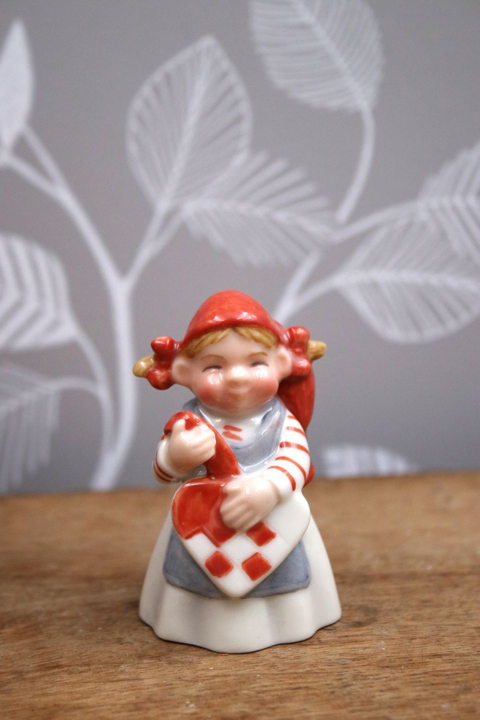 Royal Copenhagen Pixie nisse i porcelæn , nr.761.Pige med julehjerte. Højde: 6,5cm.