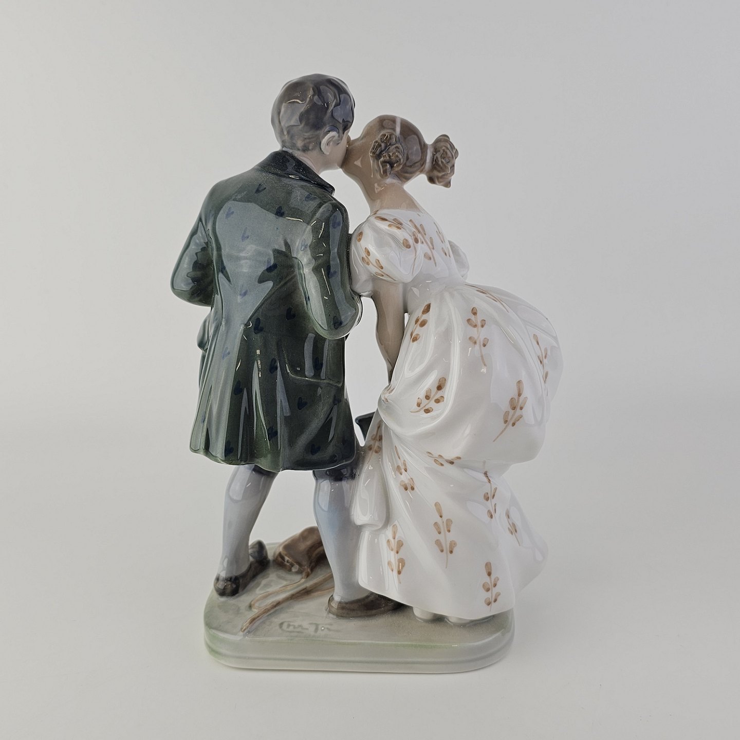 Figur i kongeligt porcelæn med motiv af prinsessen og svinedrengen fra H.C. Andersens eventyrNr. 1114