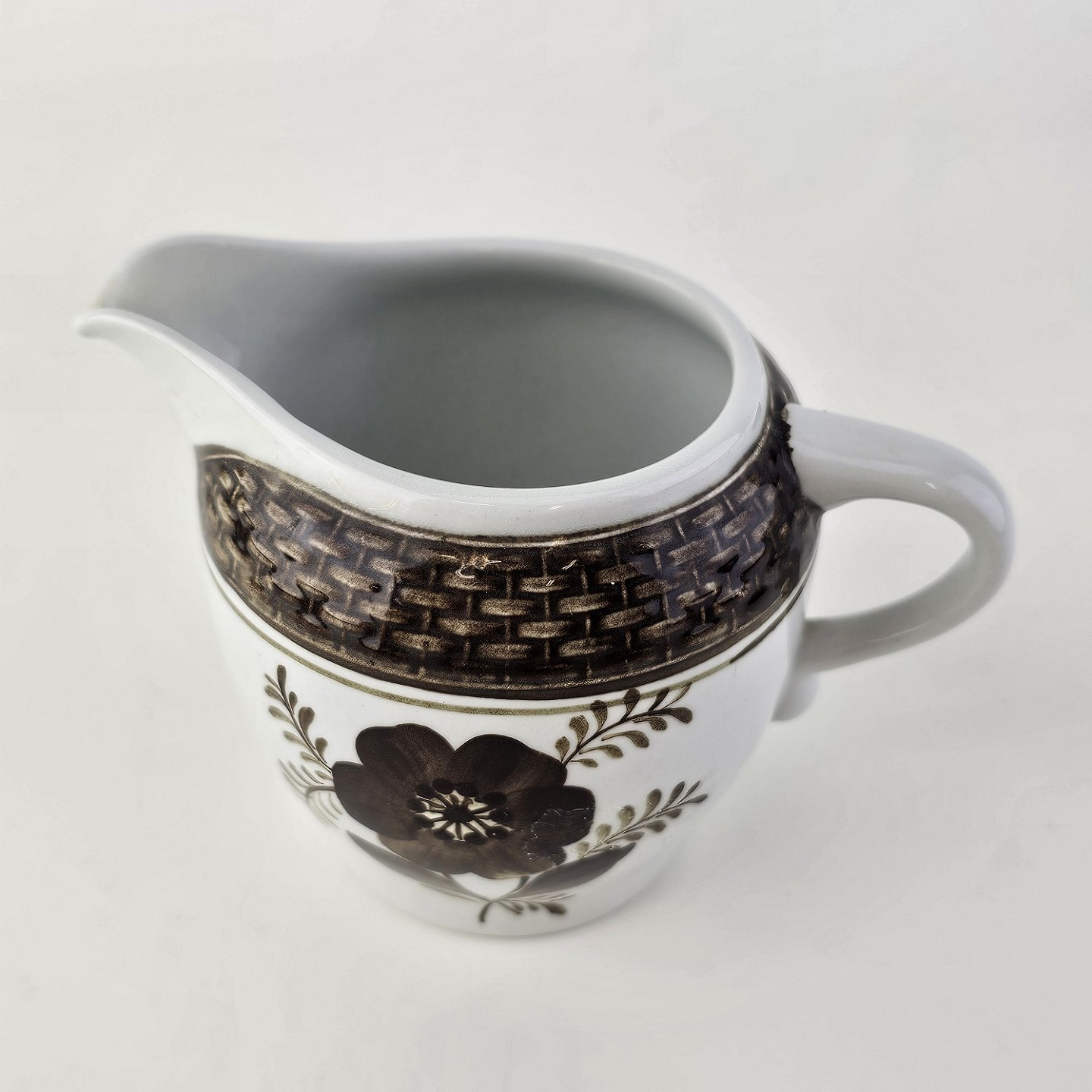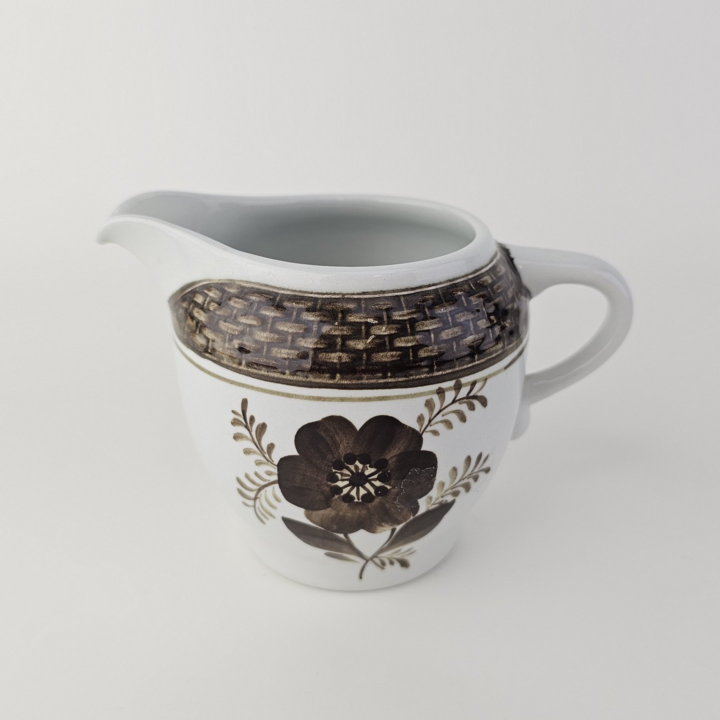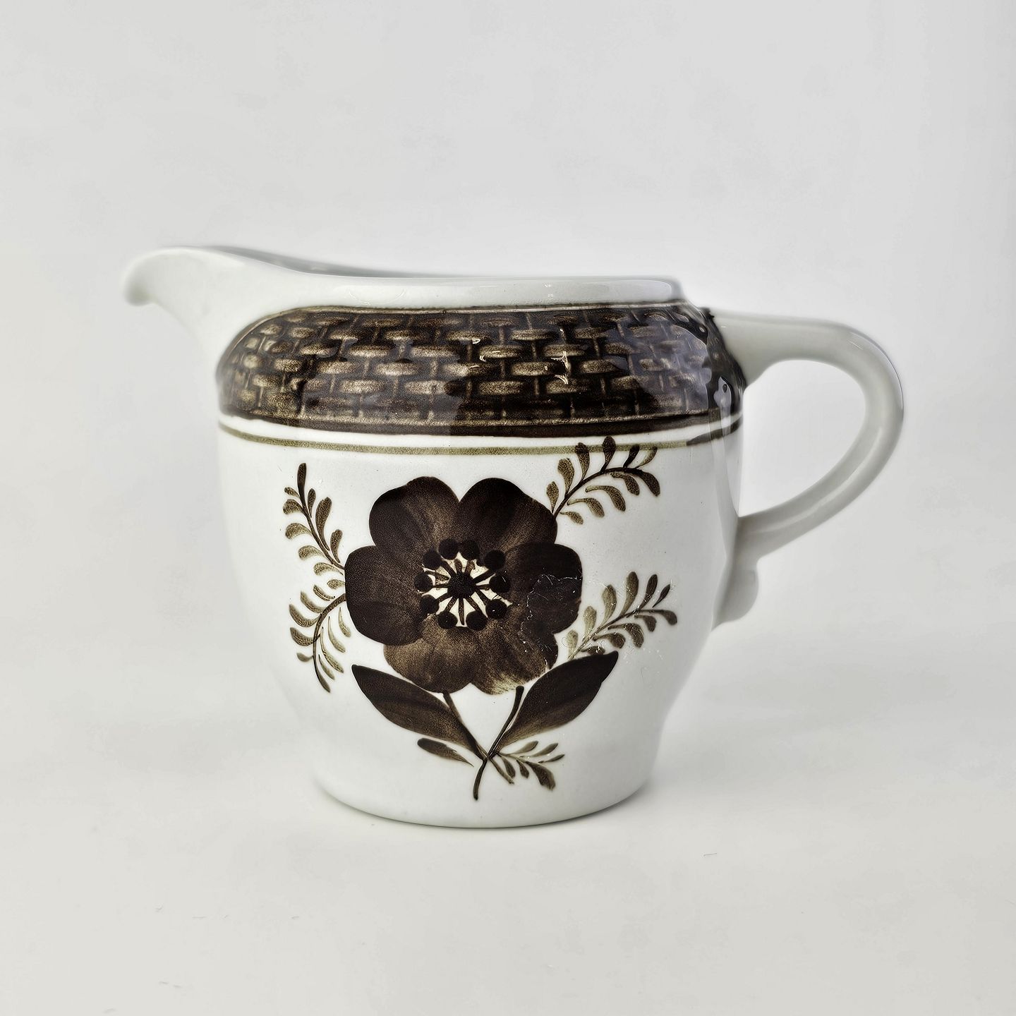 Flødekande i fajance fra stellet Brun Tranquebar fra år 1919Nr 45/956