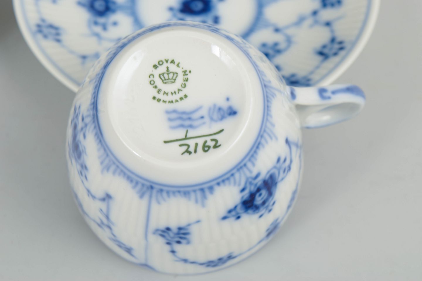 Musselmalet Riflet er Royal Copenhagens ældste og mest ikoniske stel, oprindeligt introduceret i slutningen af 1700-tallet. Det karakteristiske håndmalede mønster og den riflede form er blevet et symbol på dansk porcelænshåndværk og har været i kontinuerlig produktion i generationer.