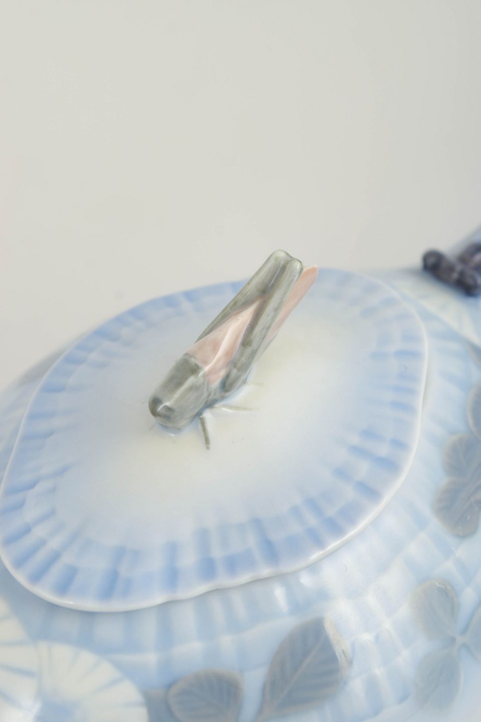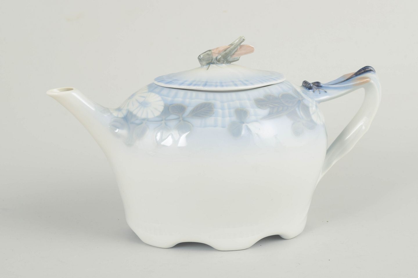 Royal Copenhagen, Skærsommernatsdrøm, tekande.Elegant tekande i porcelæn fra serien Skærsommernatsdrøm, model 73/10036. Formen er blødt svungen med integreret tud og hank, og låget er forsynet med et naturalistisk knopgreb. 1. sortering.