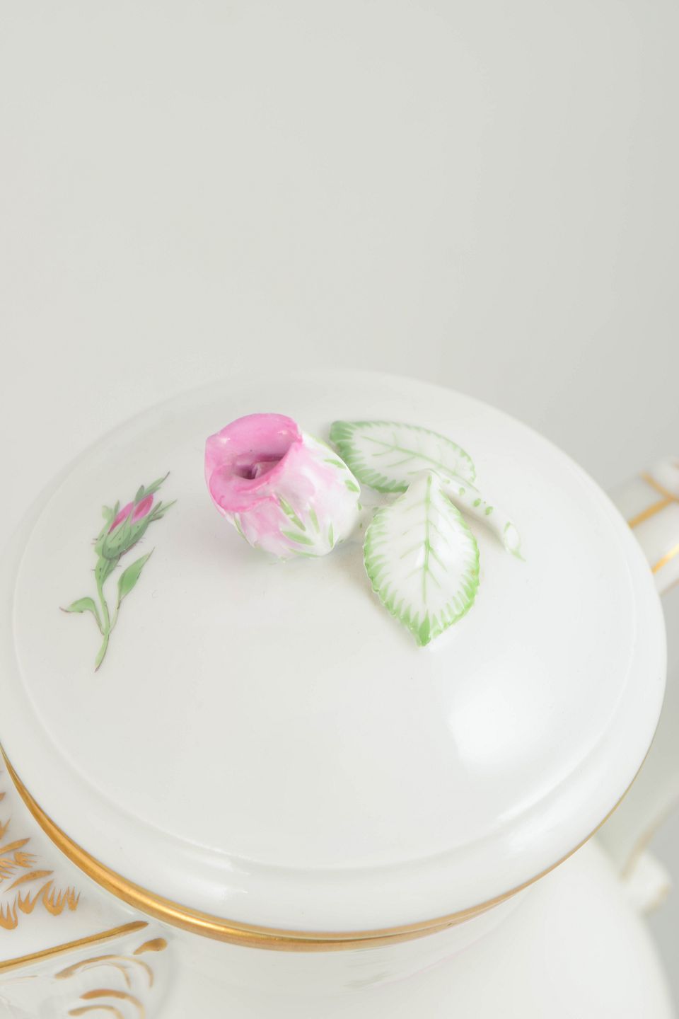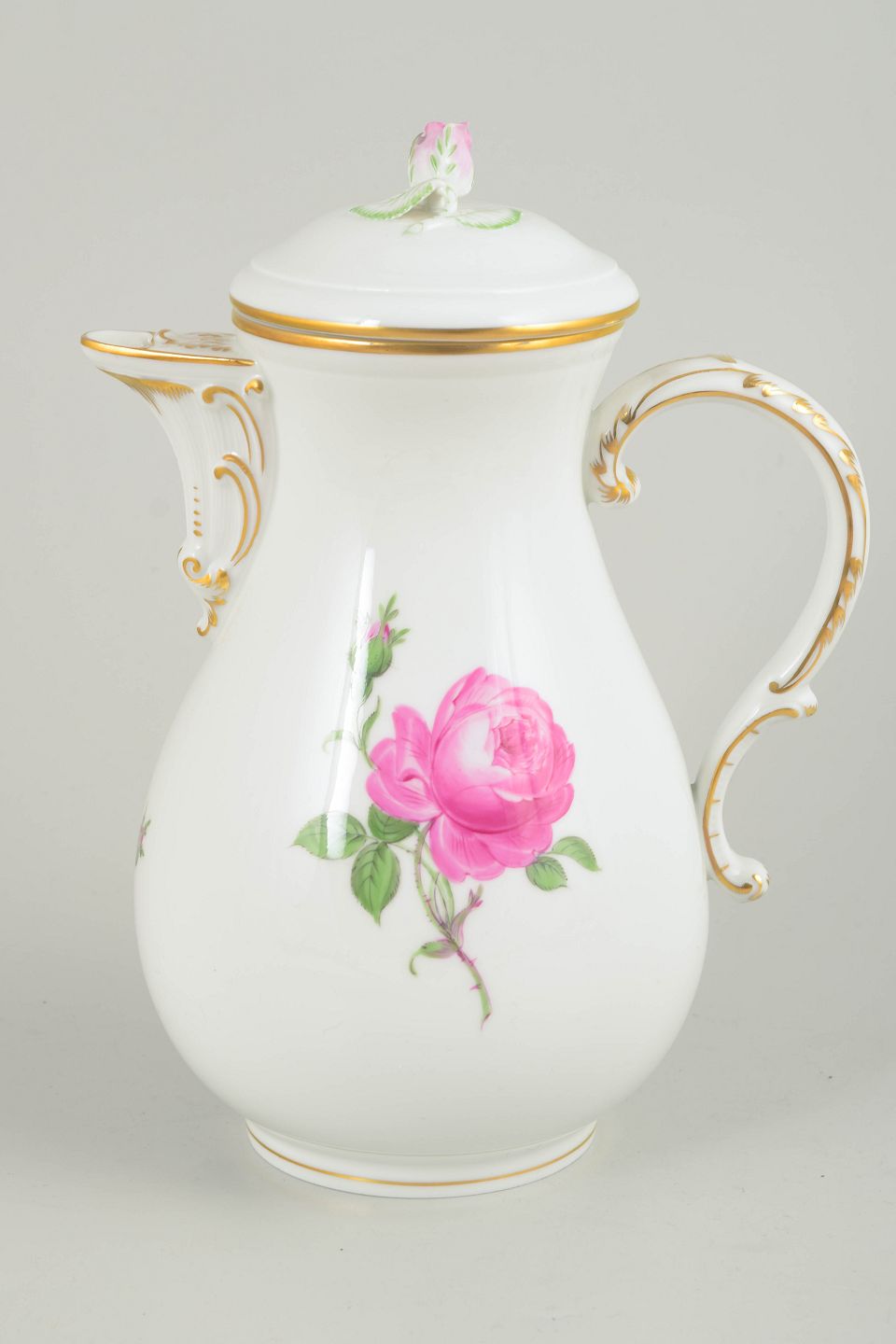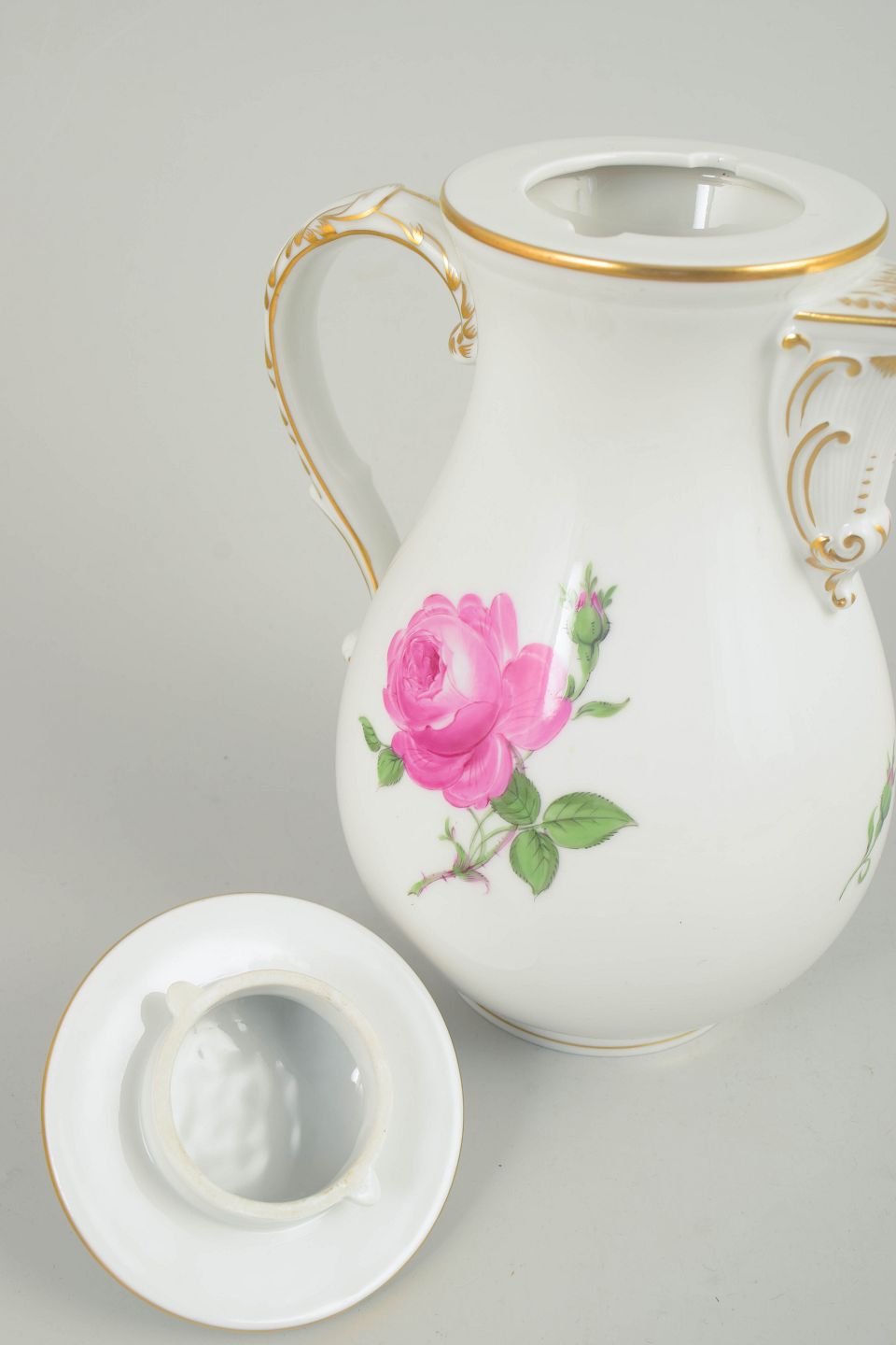 Meissen, kaffekande med låg, serien Pink flower.Kaffekande i hvidt porcelæn med håndmalet polykrom lyserød blomst fra serien Pink flower samt forgyldte kanter. Balusterformet korpus med svungen hank og knop på låget.