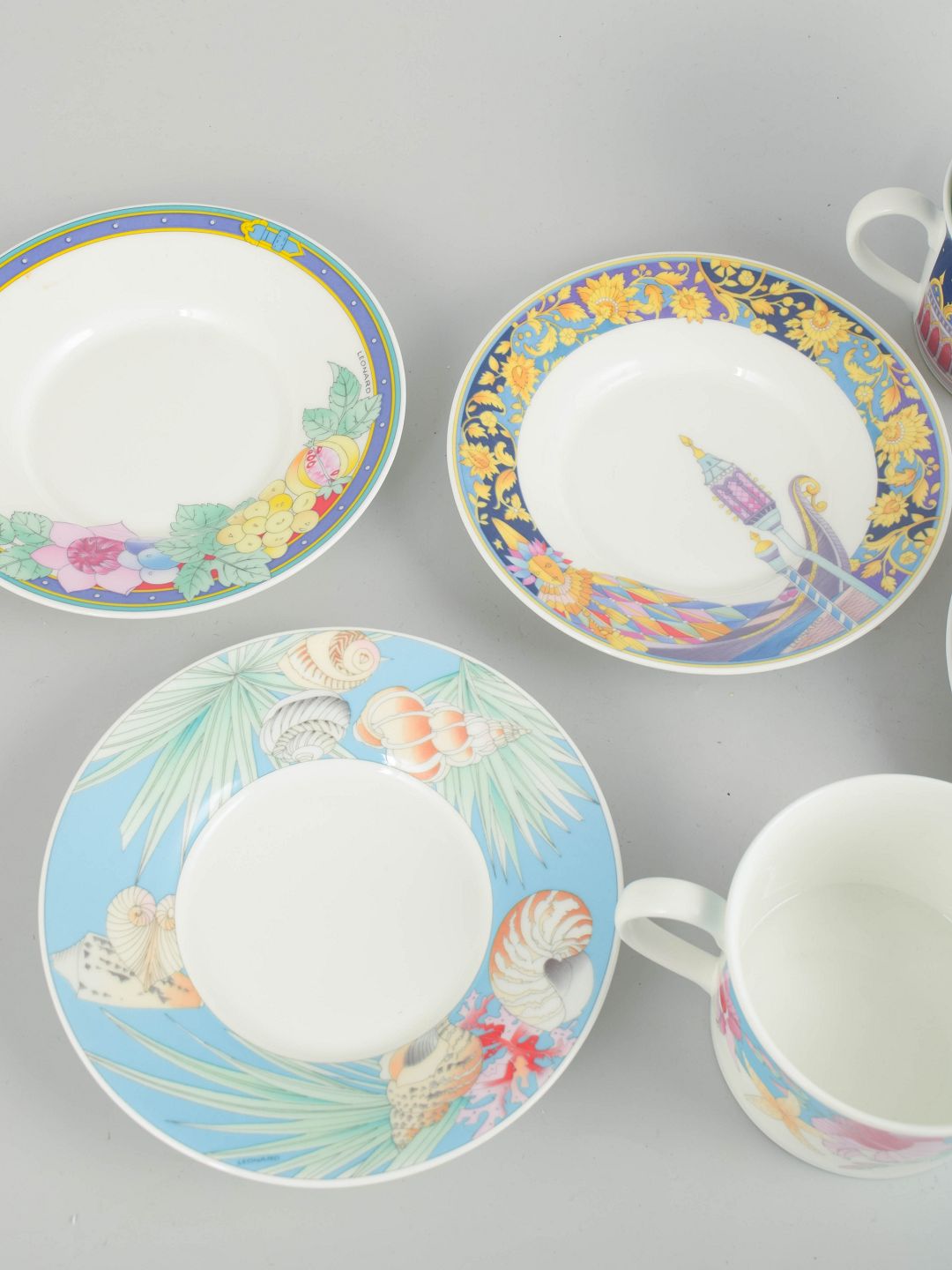 Hutschenreuther var en markant tysk porcelænsproducent, kendt for høj brændingskvalitet, præcis dekoration og et bredt sortiment af service- og gaveartikler. I det sene 1900-tal arbejdede fabrikken ofte med moderne, grafiske udtryk og internationale motiver, hvor porcelænets lethed og styrke gav et elegant og raffineret præg til både hverdags- og selskabsservice.