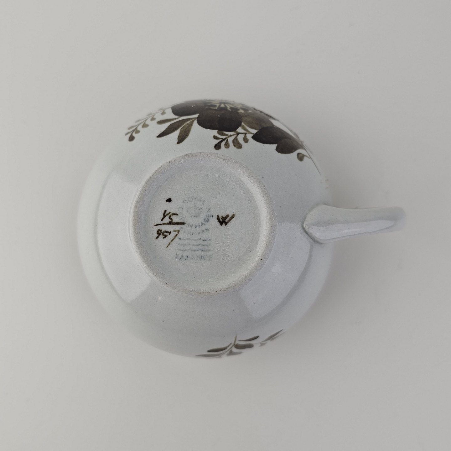 Tekop med underkop i fajance fra stellet Brun Tranquebar fra år 1919Nr 45/957