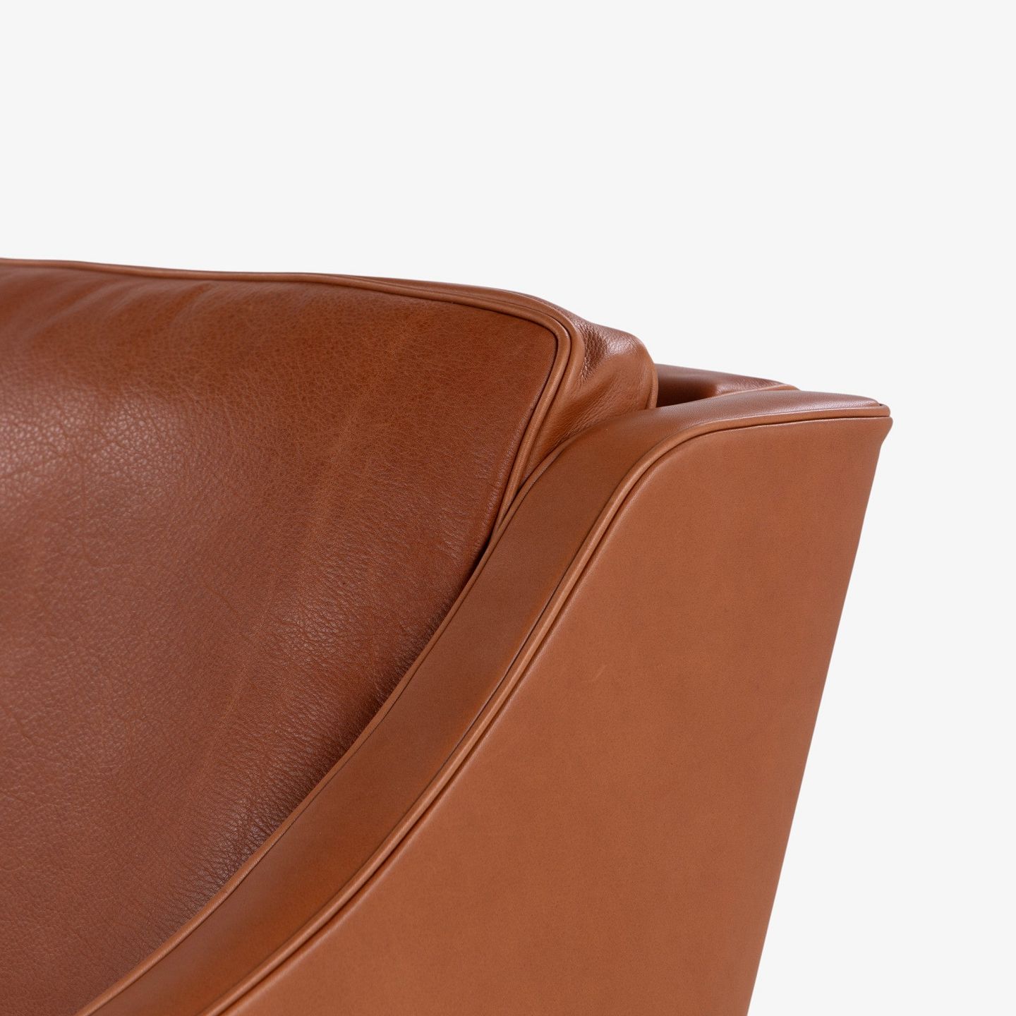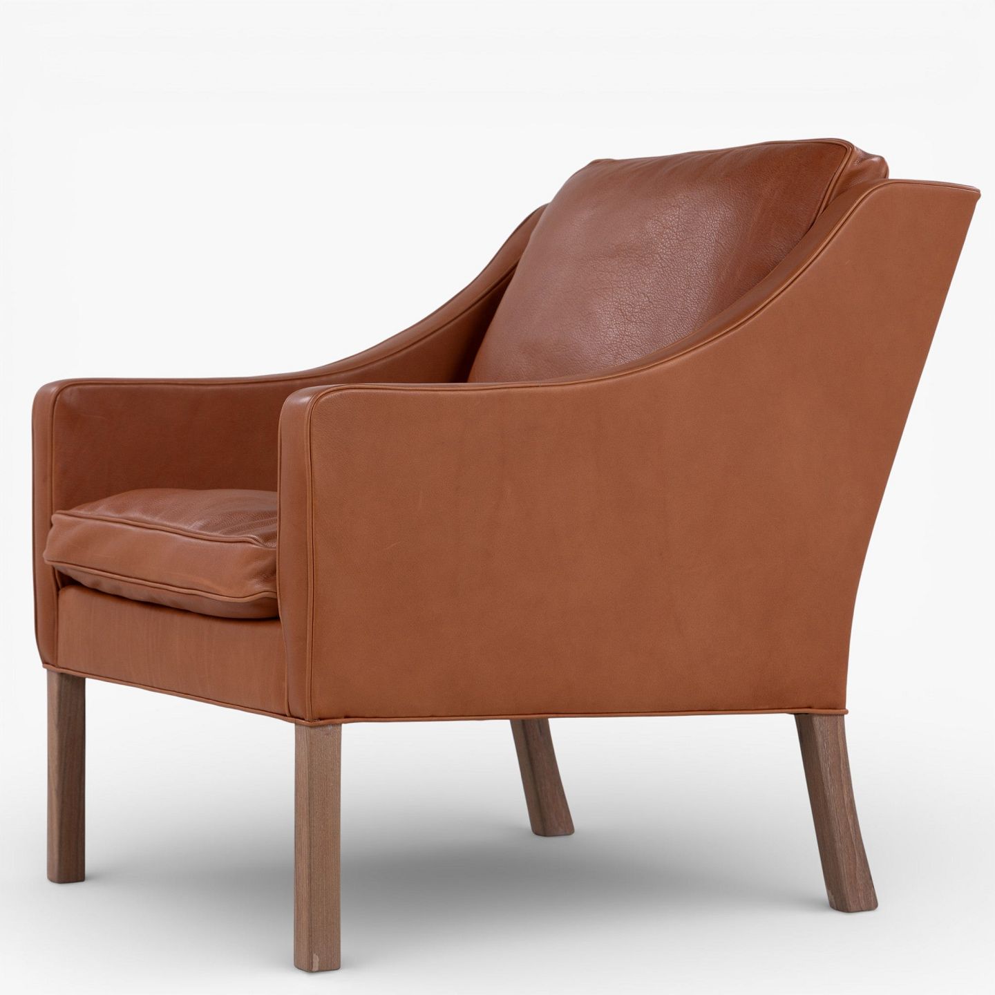 BM 2207 - Nybetrukket lænestol i cognac-farvet anilinlæder med hvidolieret ben.