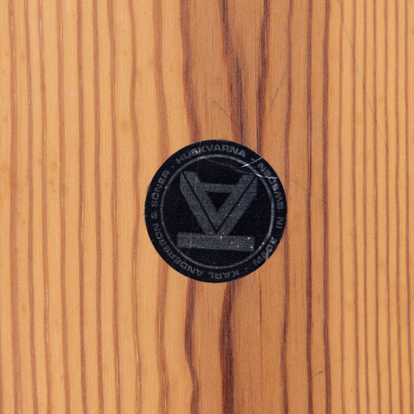 Bænk i massiv, lakeret fyrretræ. Mærket fra producent.