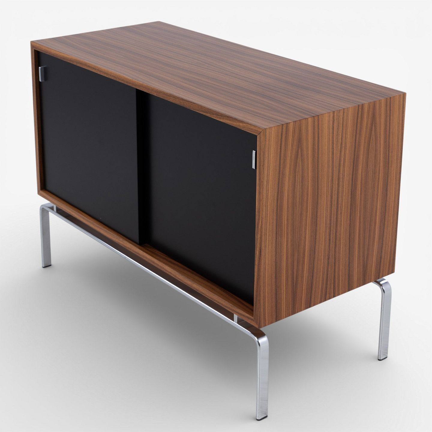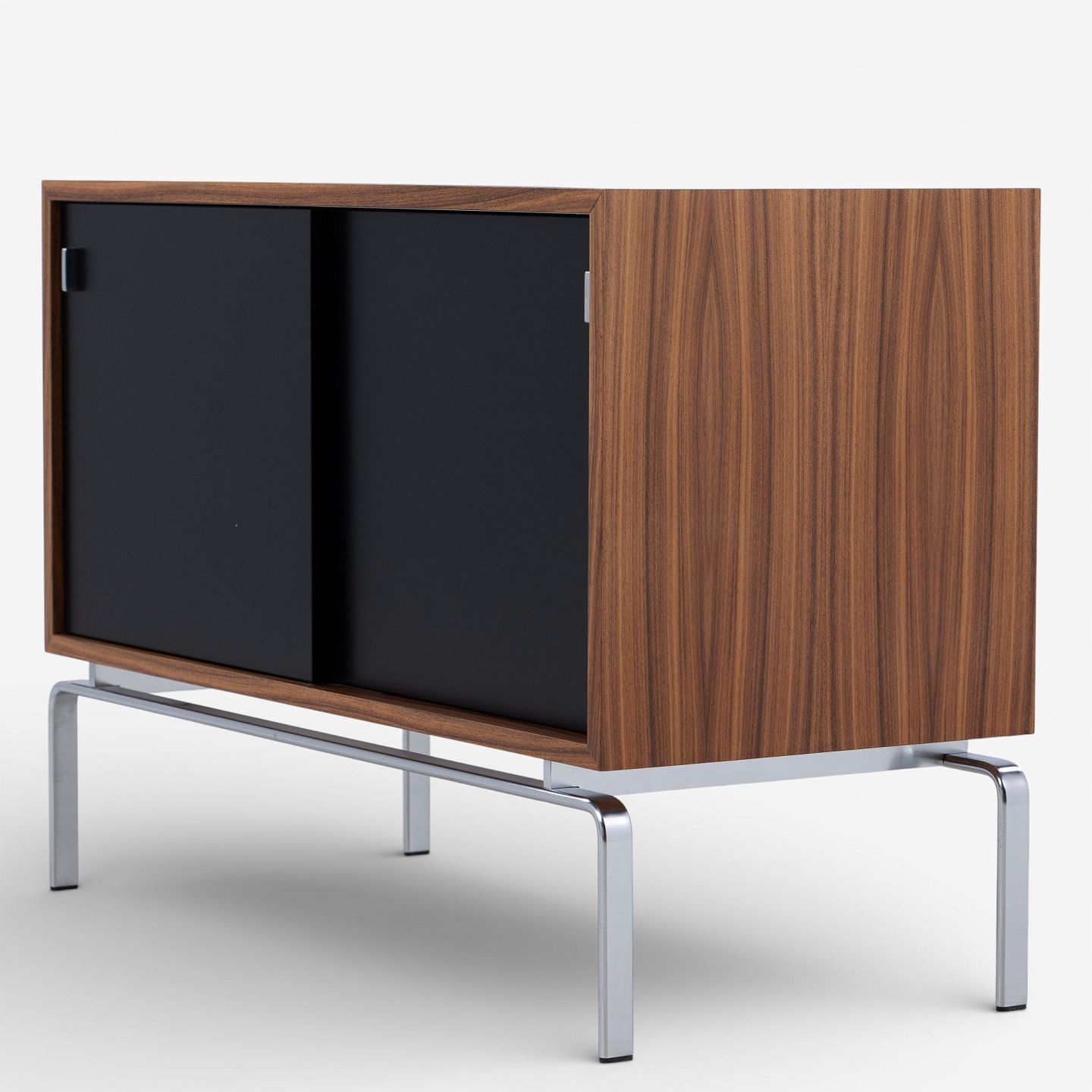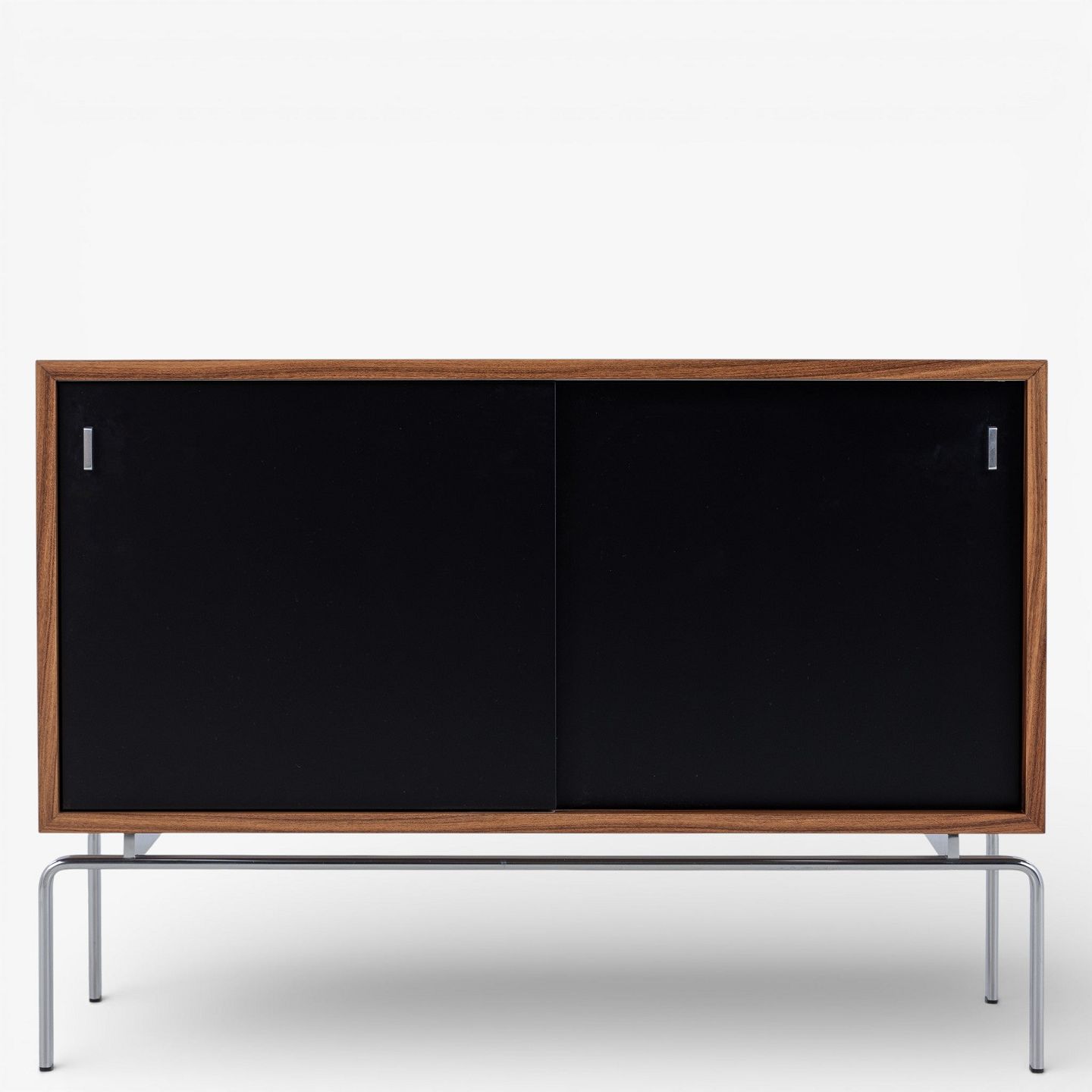 FK 100 - Skænk i palisander med sortlakerede skydelåger og stel i stål.