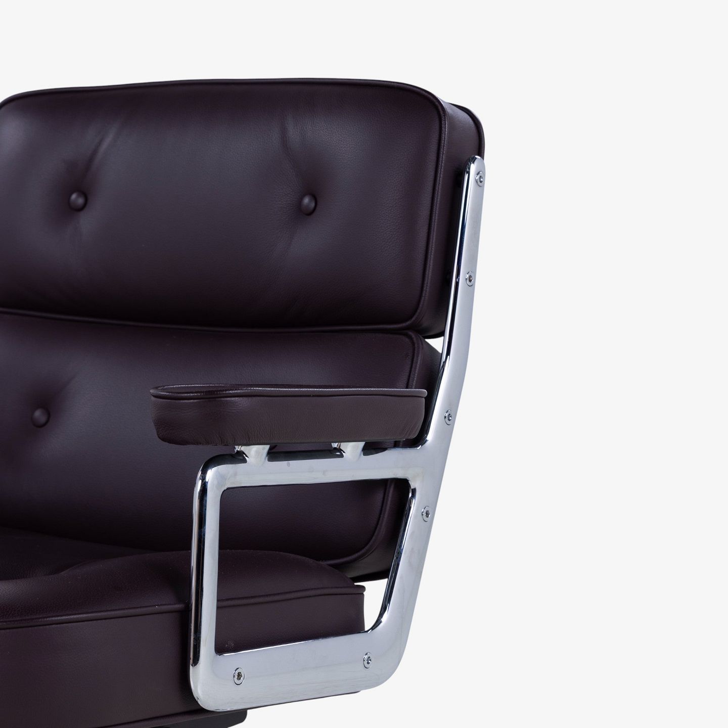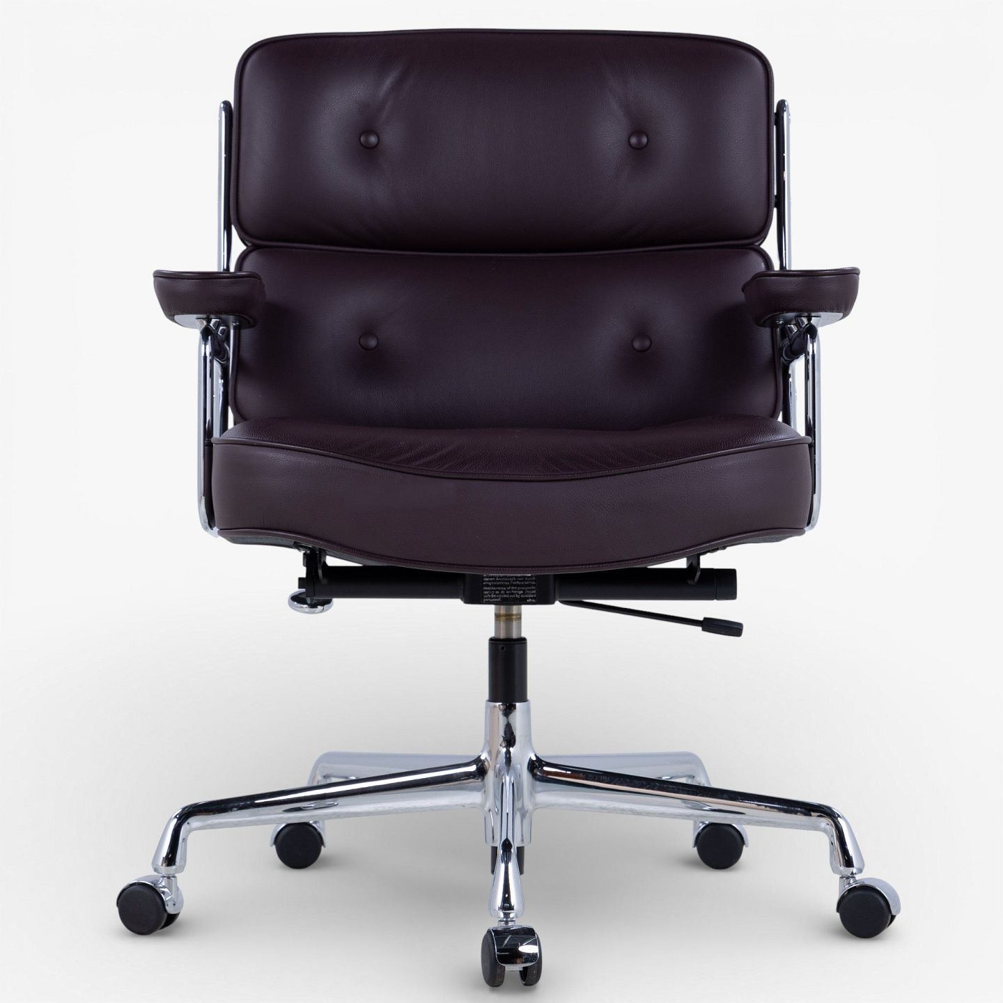 ES-104 - Kontorstol i mørkebrunt læder m. armlæn og stel i stål m. højdejustering. Mærket fra producent.