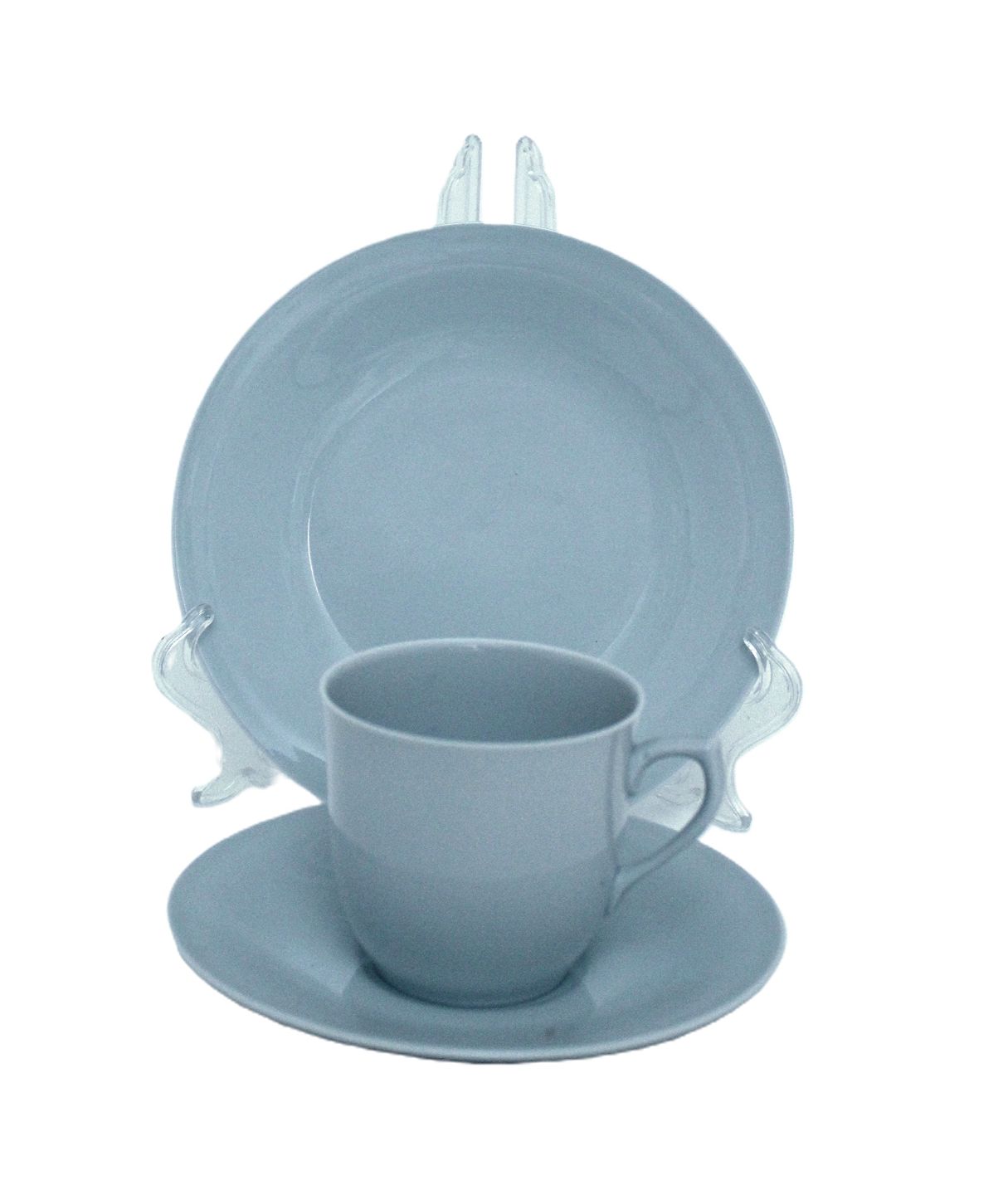 Bing & Grøndahl, Leda, Sart lysegrå/lyseblå stel. Farven snyder meget, på billederne ser det lyseblåt ud og alt efter lyset ser det gråt ud.